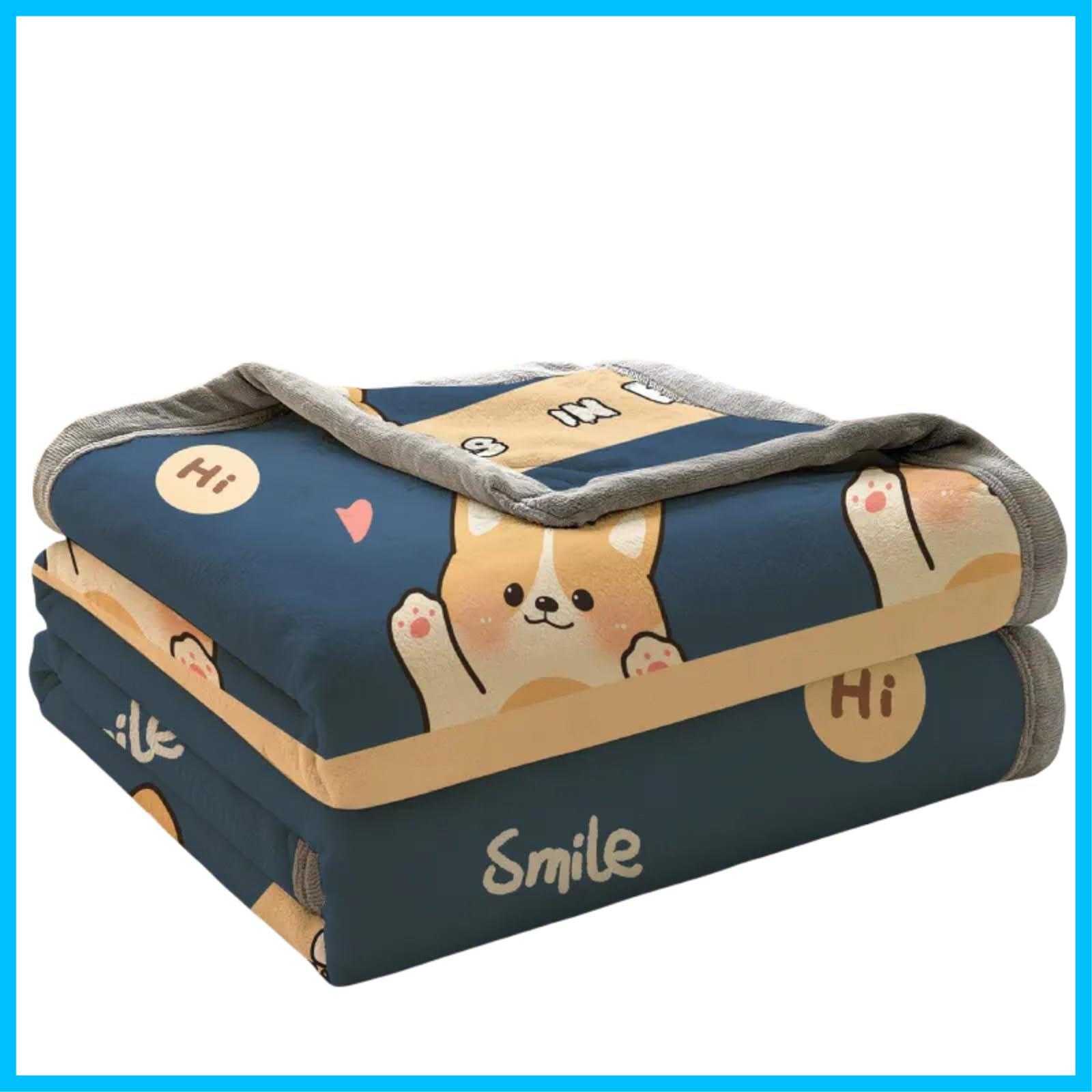 タオルケット 毛布 シングル【多用途・可愛い・丸洗い】 掛け布団 シングル 着る毛布 両面用 肌に優しい 柔らかい ふんわり 通気性 吸湿速乾 抗菌防臭 洗濯可能 冷房対策 四季兼用 (にこコギ, 180*200cm)