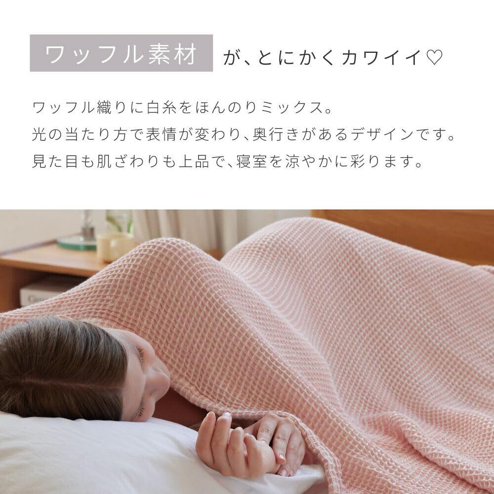 ワッフル素材がとにかくかわいい。 ワッフル織りに白糸をほんのりミックス。光の当たり方で表情が変わり、奥行があるデザインです。見た目も肌触りも上品で、寝室を涼やかに彩ります。