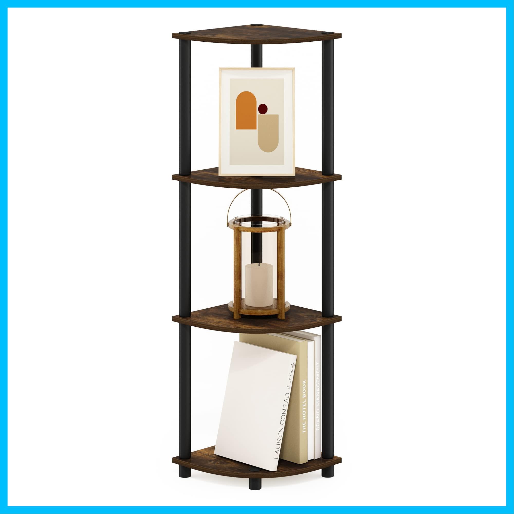 フリノ(Furinno) 4段コーナーシェルフ・コーナーラック Turn-N-Tube 高さ110.5×幅29.5×奥行29.5cm カラー:アンバーパイン/ブラック 【日本正規輸入品】 12078APBK