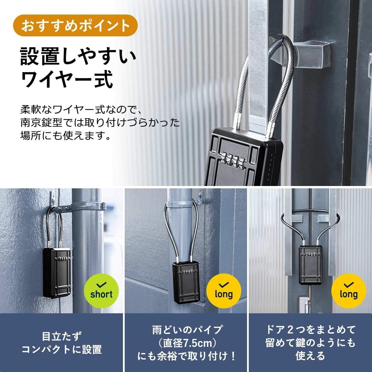 【数量限定】サンワダイレクト キーボックス ダイヤル式 4桁 ワイヤー長20cm 大型 鍵収納 盗難防止 200-SL065BK