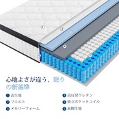 「マットレス シングル」は、極厚22cmの構造で、適度な硬さを保ちながら体に負担をかけず、快適な寝姿勢を実現します。高反発ウレタンと高密度のポケットコイルを使用しており、睡眠中の体圧分散をサポートし、快適さを提供します。しっかりとしたサポート感を求める方に最適です。