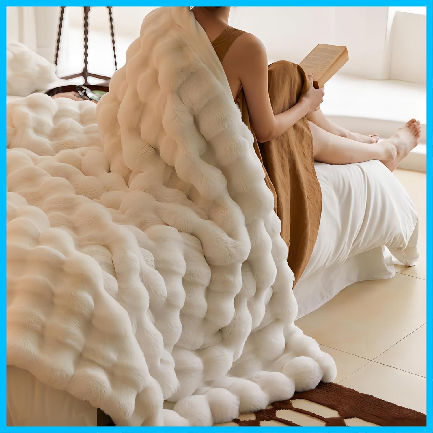 【在庫処分】毛布 ふわとろ毛布 ブランケット ひざ掛け [TV・SNS 2024年新デザイン 表裹もラビットファー調毛布] 二枚合わせ あったか ラグジュアリーウォーム 秋冬掛け毛布 厚手 もこもこ 暖かい もうふ 掛け毛布 毛抜けない 静電気防止 肌ふとん 柔らかく ふわふわ 冷え対策 洗える 吸湿発熱 昼寝 高級(ホワイト 100*160)