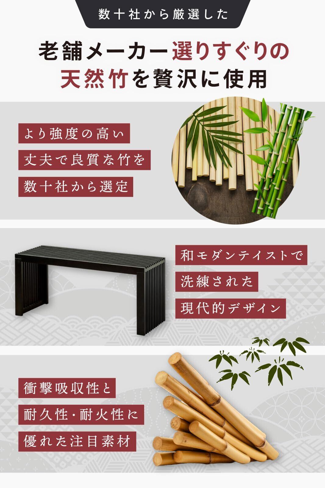 竹は耐久性に優れ、軽量でありながらも強度があり、長期間の使用に適しています。座面の広さは90cmまたは45cmから選べるため、様々なスペースにピッタリフィットするサイズをご用意しています。
