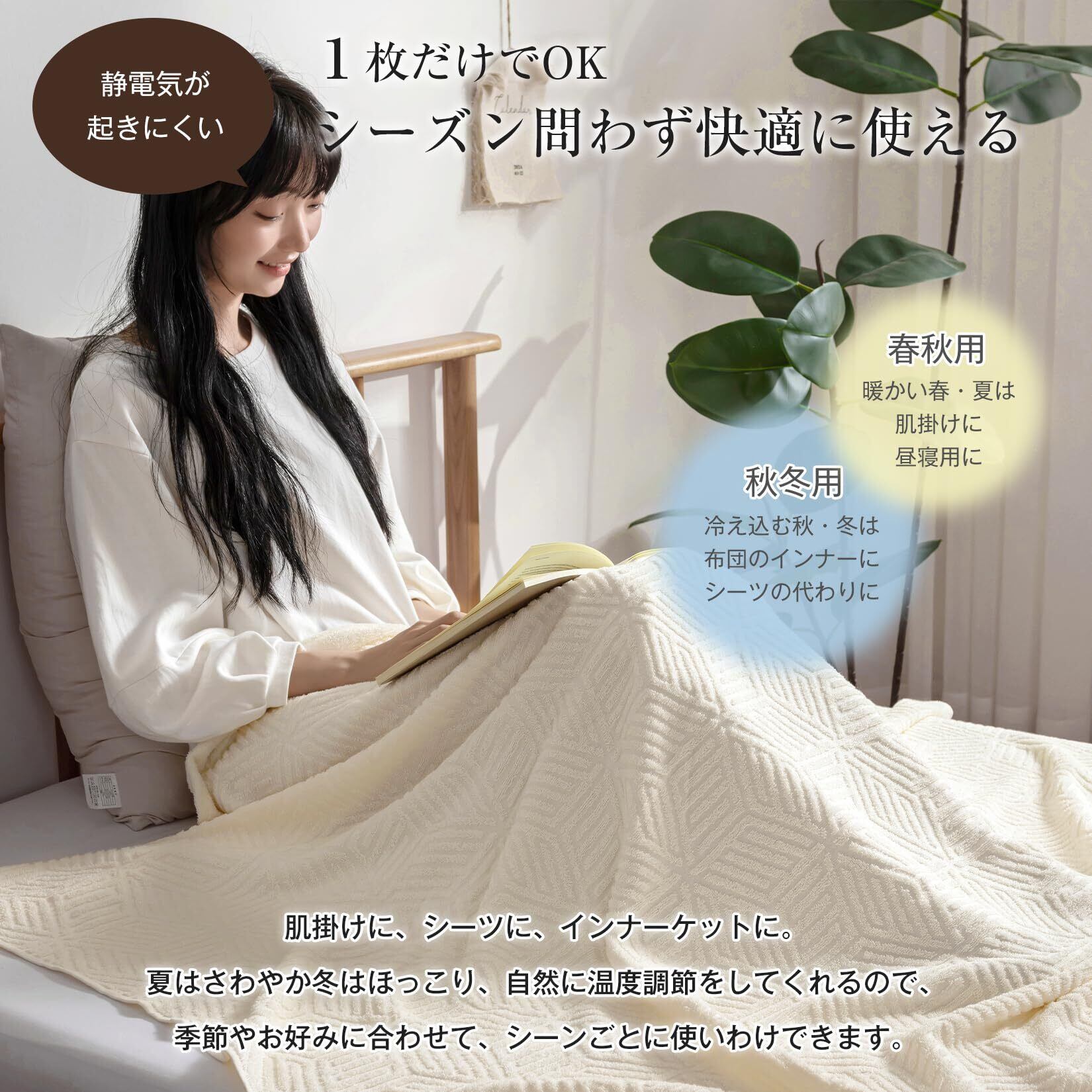 【一年中使えるほどよい厚手感】適度な弾力とボリューム感も兼ね備えているため、シーツとして下に敷くことも、かけ布団代わりに体を包むこともできます。素肌で心地よさを実感できる寝具として、オールシーズンおすすめです。