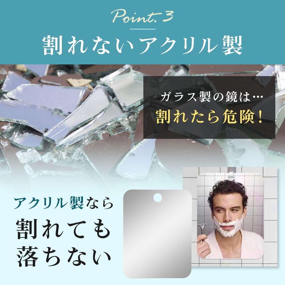 Mark Leon's アクリル製ミラー 割れにくい 曇り止め加工 フックに掛けるだけ お風呂 洗面台 水周り 化粧鏡 メイクアップ