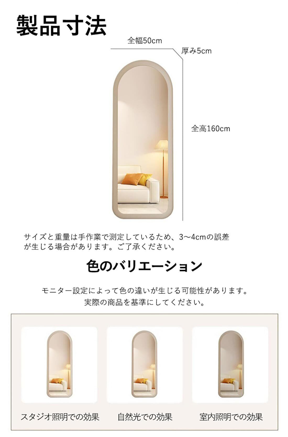 【完璧なサイズ】160 x 50cmのフルサイズで、全身を映し出し、部屋の視覚スペースを拡張します。自然光でも人工光でも、部屋に十分な明るさを提供します