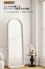 「全身鏡」は、160cm×50cmの等身大サイズで、全身をしっかり映し出します。ベージュのカラーが優しく、どんなインテリアにもマッチする洗練されたデザインが魅力です。リビングや玄関、浴室など、さまざまなシーンで大活躍します。