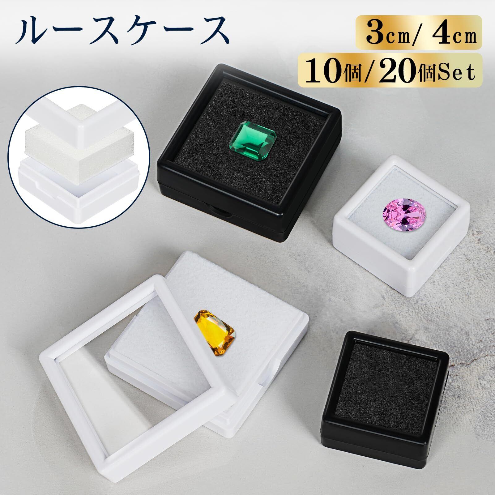 【商品仕様】品名:ルースケース カラー:ホワイト、ブラック 蓋:ガラス ケース:プラスチック 黒の台紙:スポンジの上に黒フロッキーの布 白の台紙:スポンジの上に白のレーヨンの布