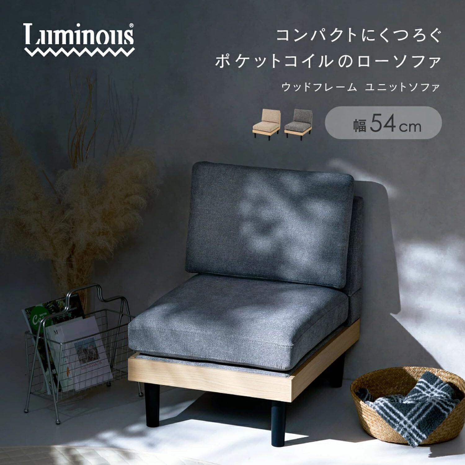特徴・機能:ロータイプ、フロアタイプ2WAY使用可能/木製フレーム・ポケットコイル採用/構造部材:【背部】合板、【座部】合板・金属(鋼)・パーティクルボード、【脚部】ポリプロピレン/張り材:ポリエステル/クッション材:ウレタンフォーム・鋼製ばね(ポケットコイル)