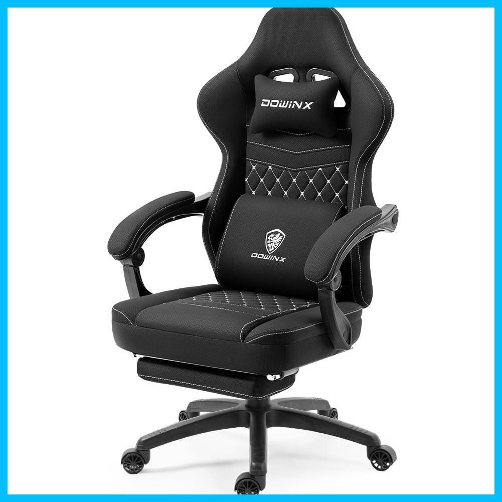 Dowinx ゲーミングチェア 涼感ジェルシート 椅子 チェア ファブリック オットマン付き オフィスチェア パソコン フットレスト デスクチェア ゲーム用 布 ポケットコイル PCチェア ハイバック ソファー座り心地 ライトブラック