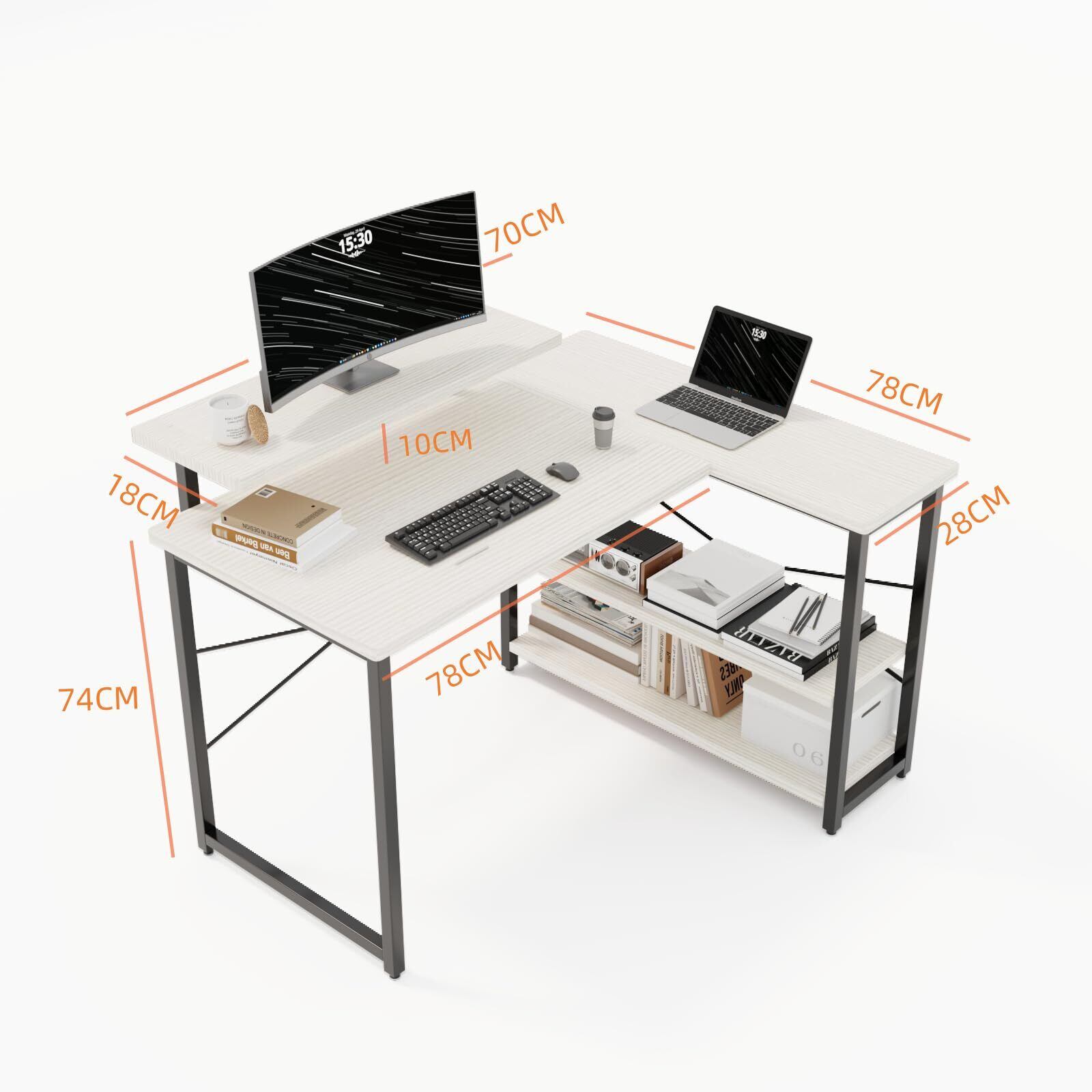 【数量限定】パソコンデスク 机 学習机 勉強机 Computer Desk ゲーミングデスクワークデスク L字デスク 棚付き PC 省スペース 組立簡単 在宅勤務
