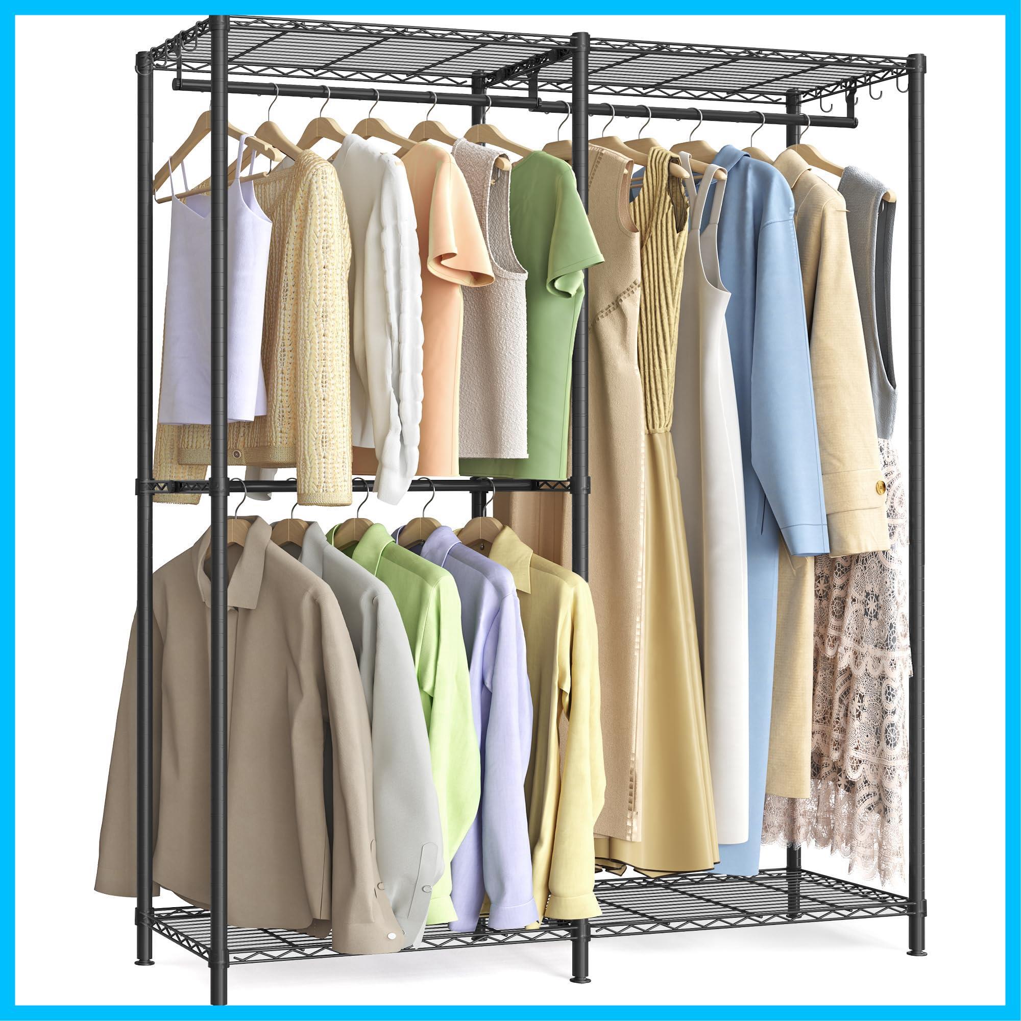 【特価セール】SONGMICS ハンガーラック 頑丈 大容量 洋服ラック 2段 幅120×奥行40×高さ180cm 業務用 全体耐荷重189kg 棚・フック付き 防錆加工 ブラック LGR423B01