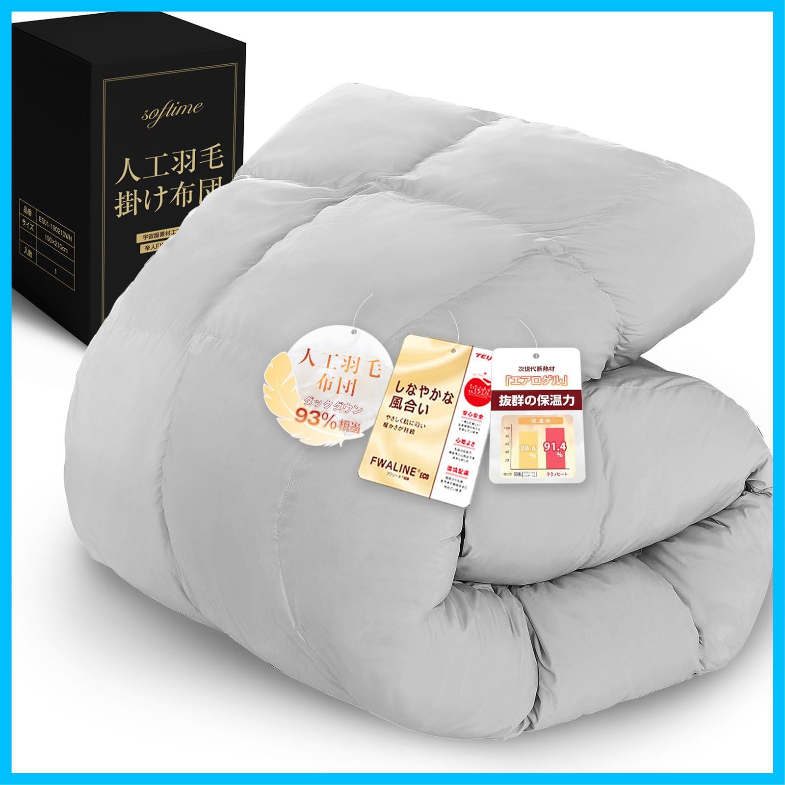 【特価セール】Softime 掛け布団 人工羽毛布団 シングル 冬 ダックダウン93%相当 【宇宙服素材エアロゲル採用 羽毛布団より軽量·保温】 体にフィットする立体キルト 帝人FWALINE使用保温力 肌掛け布団 軽くて暖かい 冬用 掛けふとん あったか ホコリ出にくい 洗える 抗菌防臭 防ダニ 柔らかな肌触り ピーチスキン加工 充填量1.3kg(150x210cm グレー)