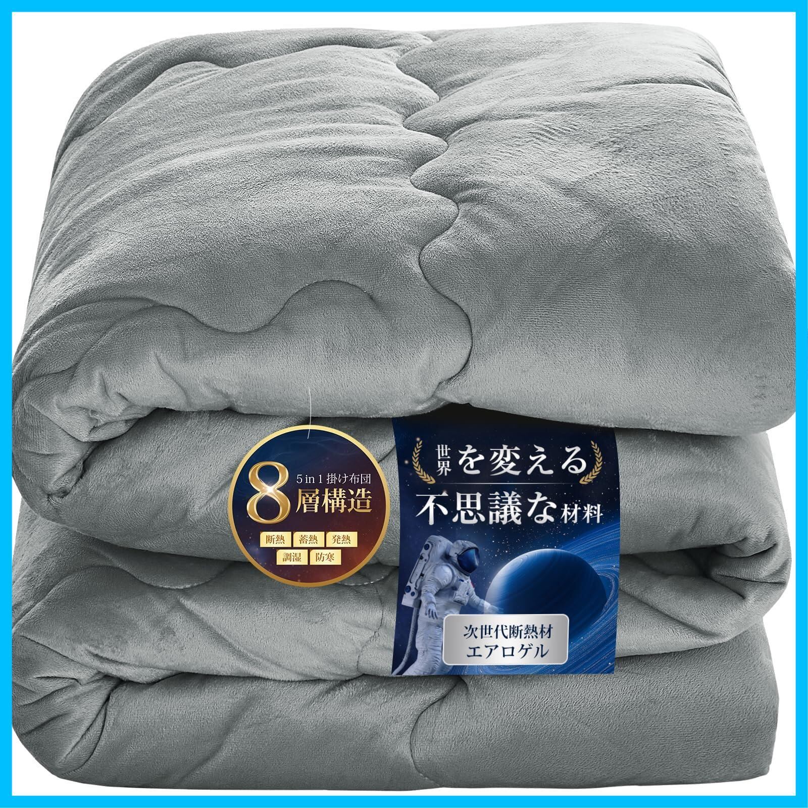 【在庫処分】Housecover 掛け布団 エアロゲル布団 シングル 冬【8層構造で断熱・蓄熱・発熱・調湿・防寒】冬用掛けふとん【高密度フランネル·極上触感】暖かい ふんわり 柔らかい ほこりが出にくい 羽毛より暖かい 真冬でも1枚でOK 冬用 掛けふとん あったか 静電気防止 洗える 抗菌防臭 防ダニ(150X210cm グレー)