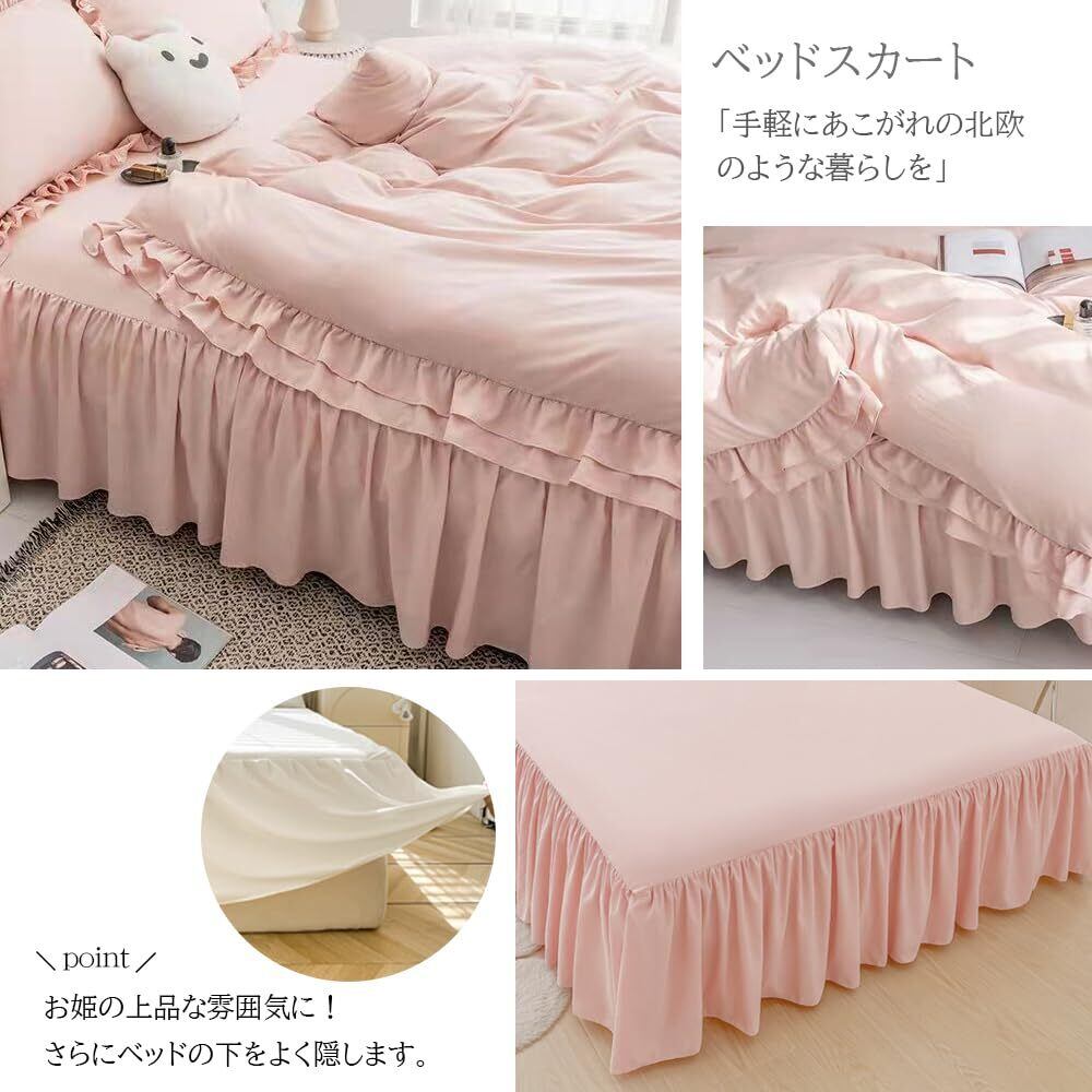 布団カバー シングル セミダブル ダブル 3/4点セット 布団カバー セット フリル 姫風 可愛い シングル掛け布団カバー ベッドスカート 枕カバー カバーシーツセット 肌に優しい フリル付きおしゃれ 北欧 ホテル 安心 清潔 丸洗いOK (ピンク, SDセミダブル-4点セット)