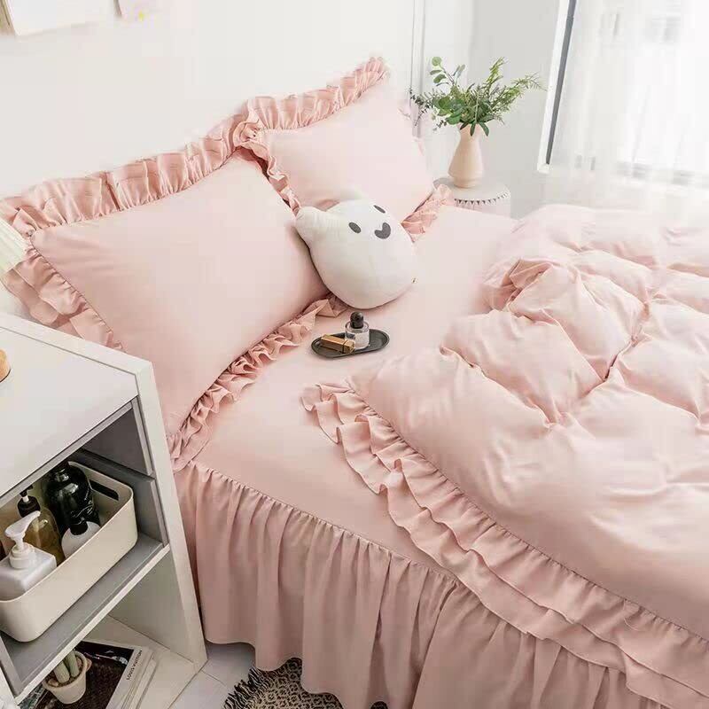 【特価セール】布団カバー シングル セミダブル ダブル 3/4点セット 布団カバー セット フリル 姫風 可愛い シングル掛け布団カバー ベッドスカート 枕カバー カバーシーツセット 肌に優しい フリル付きおしゃれ 北欧 ホテル 安心 清潔 丸洗いOK (ピンク, SDセミダブル-4点セット)