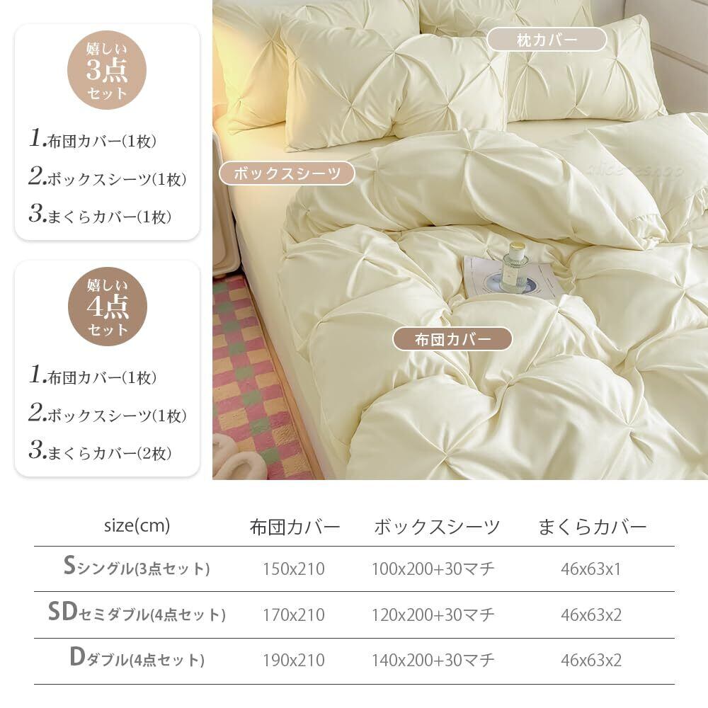 「§zz.luxi」寝具カバーセット 布団カバー ダブル 4点セット【おしゃれなイヤタックデザイン】 ボックスシーツ 可愛い 洋式・和式兼用 肌触り ベッドカバー 掛け布団カバー 枕カバー 肌に優しい ピーチスキン加工 北欧風 オールシーズン 丸洗い お手入れ簡単(アイボリー)