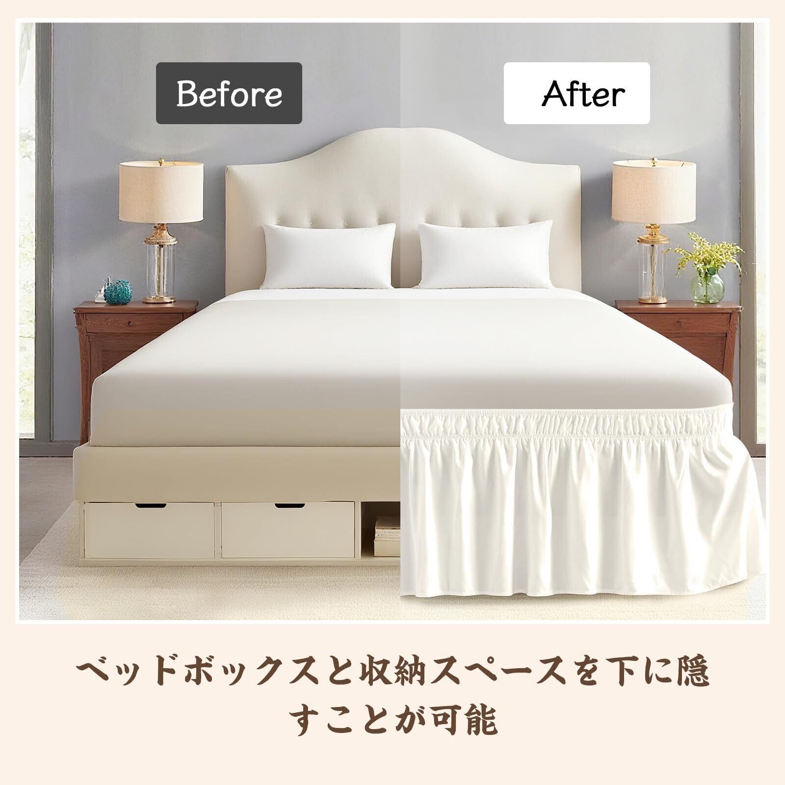 【フリル付き】:エレガントなフリルが全体を包み、高級感とおしゃれさを同時に演出するベッドスカートです。