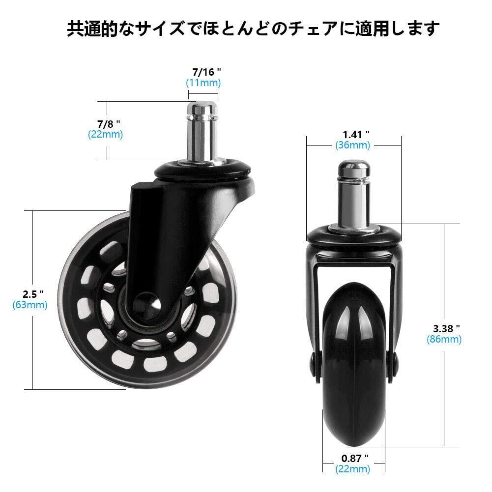 このセットには、5個のキャスターが含まれており、複数の椅子に取り付けることが可能です。自宅やオフィスの椅子をまとめてアップグレードできるのが嬉しいポイントです。