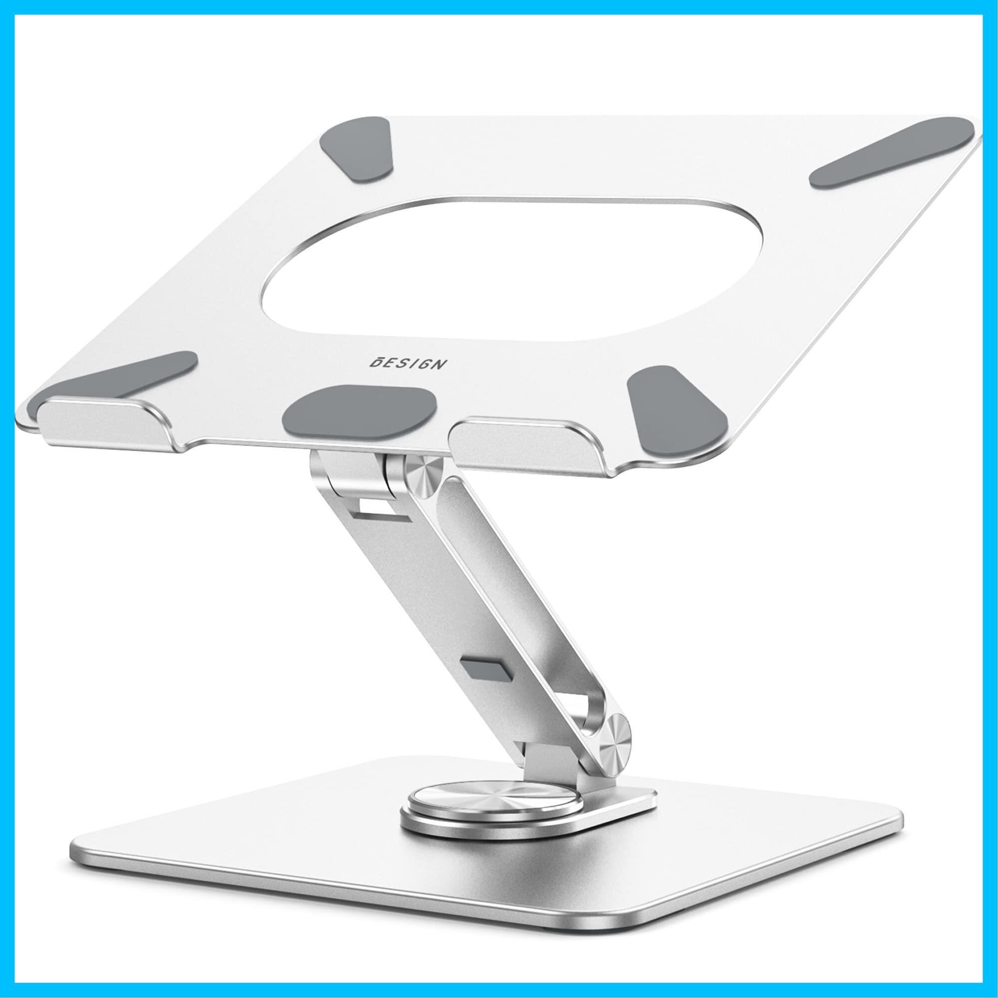 BESIGN LSX7 ノートパソコンスタンド 360度回転ベース 人間工学に基づいた調節可能なノートブックスタンド ライザーホルダー コンピュータースタンド 10~15.6インチのノートパソコンに対応 (シルバー)