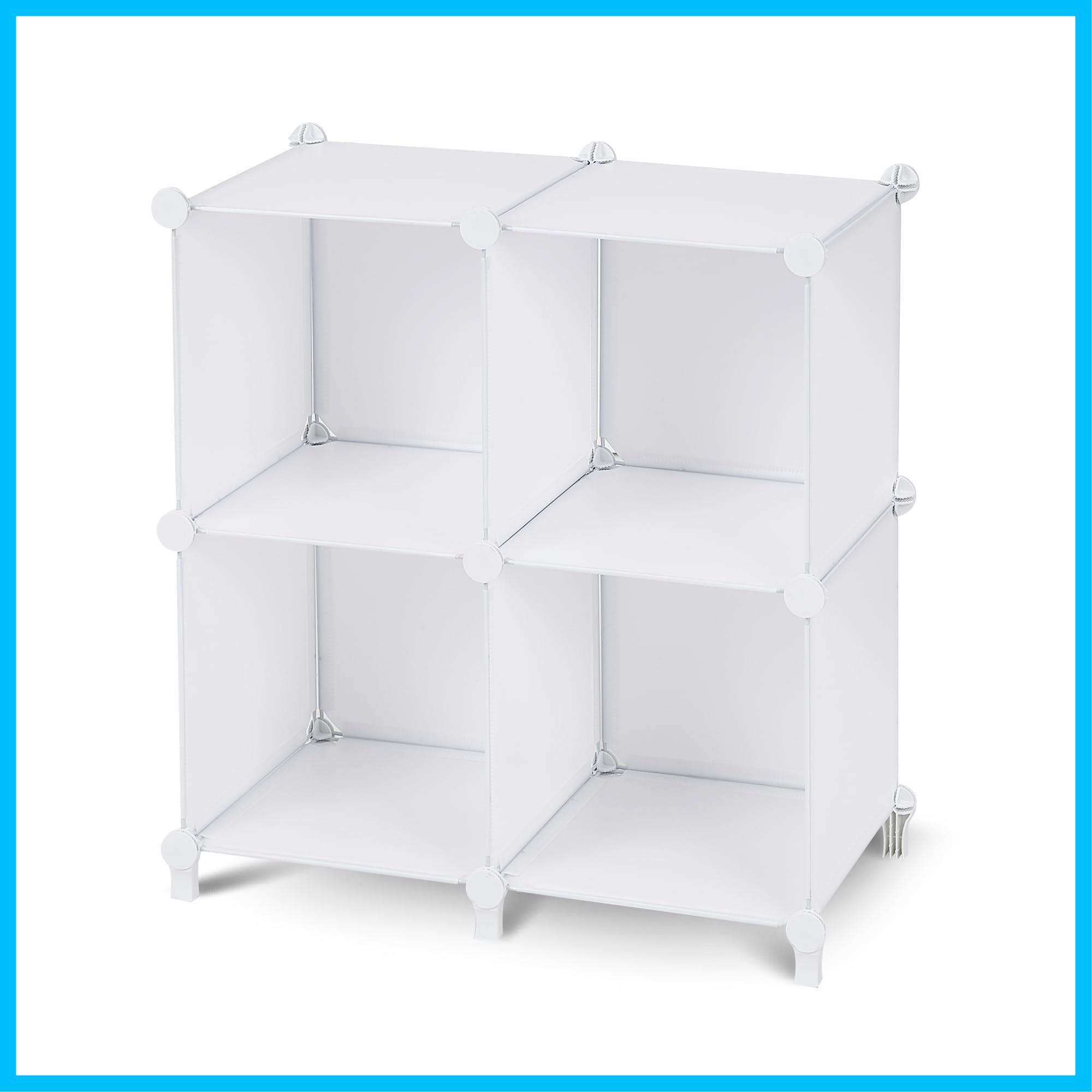 VECELO 収納ラック オープン 4ボックス ホワイト 幅65×奥行32×高さ68cm 2.3kg|キッズスペースにも最適 絵本・文房具・CDがすぐ取り出せる 見せる収納で空間スッキリ