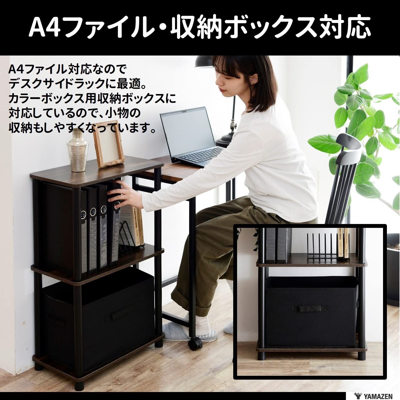 A4ファイルが収納できるサイズ感なので、デスクサイドラックとしても活躍します。カラーボックス用の収納ボックスにも対応しているので、散らかりがちな小物の収納も可能です。