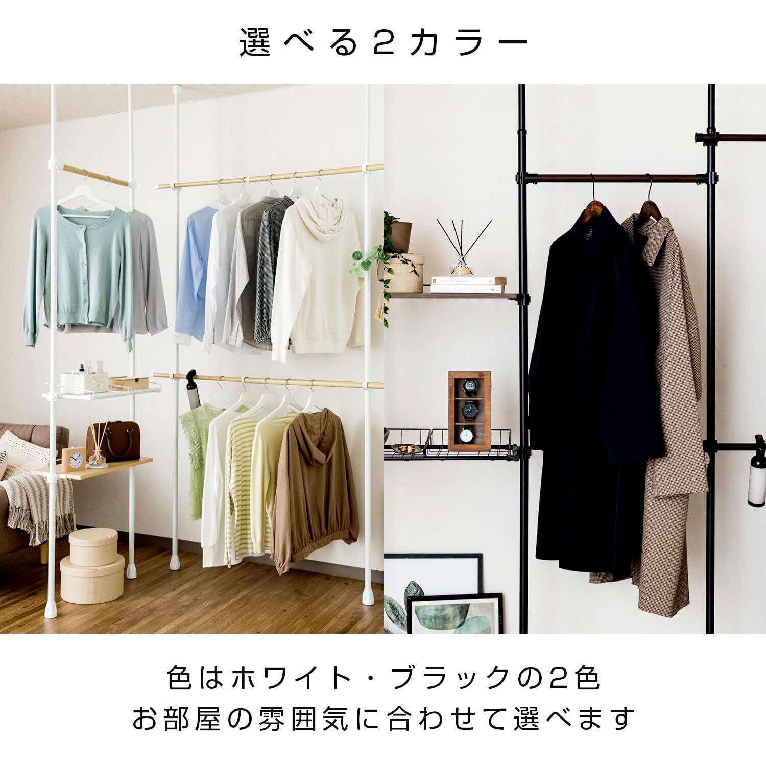全体耐荷重は24kgと、衣類や小物をしっかり支えられる安心感があります。重たいコートや季節的なアイテムも集中して収納可能で、整理された空間を維持する強い味方です。