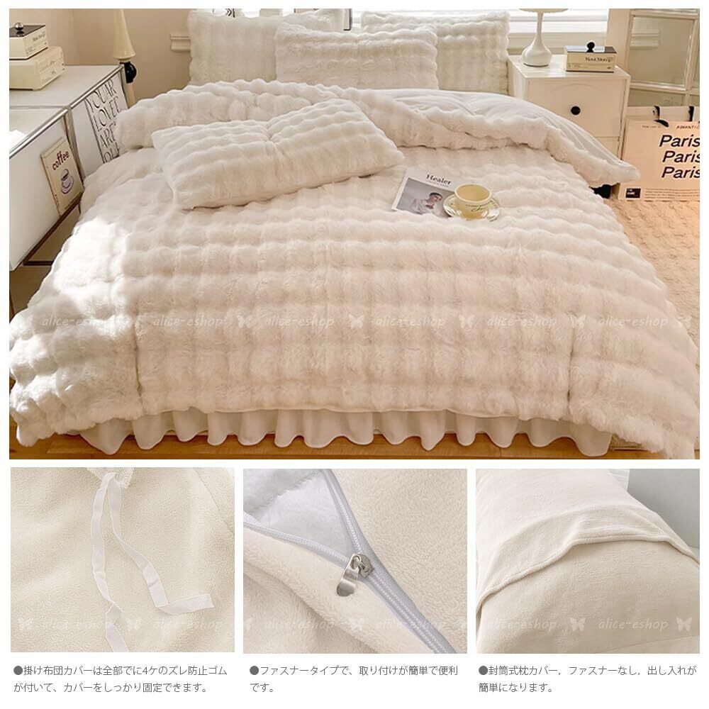 【特価商品】「§zz.luxi」布団カバーセット 3点セット シングル 冬用 ミルクファー調 ふわとろ あったか フランネル フリル マイクロファイバー 厚手 もこもこ ボックスシーツ 掛け布団カバー 封筒式枕カバー 静電気防止 ふわふわ 暖かい 冷え対策 洗える 吸湿発熱 昼寝 高級 寝具カバー 姫系 ポコポコ(ホワイト-ミルクファー調)