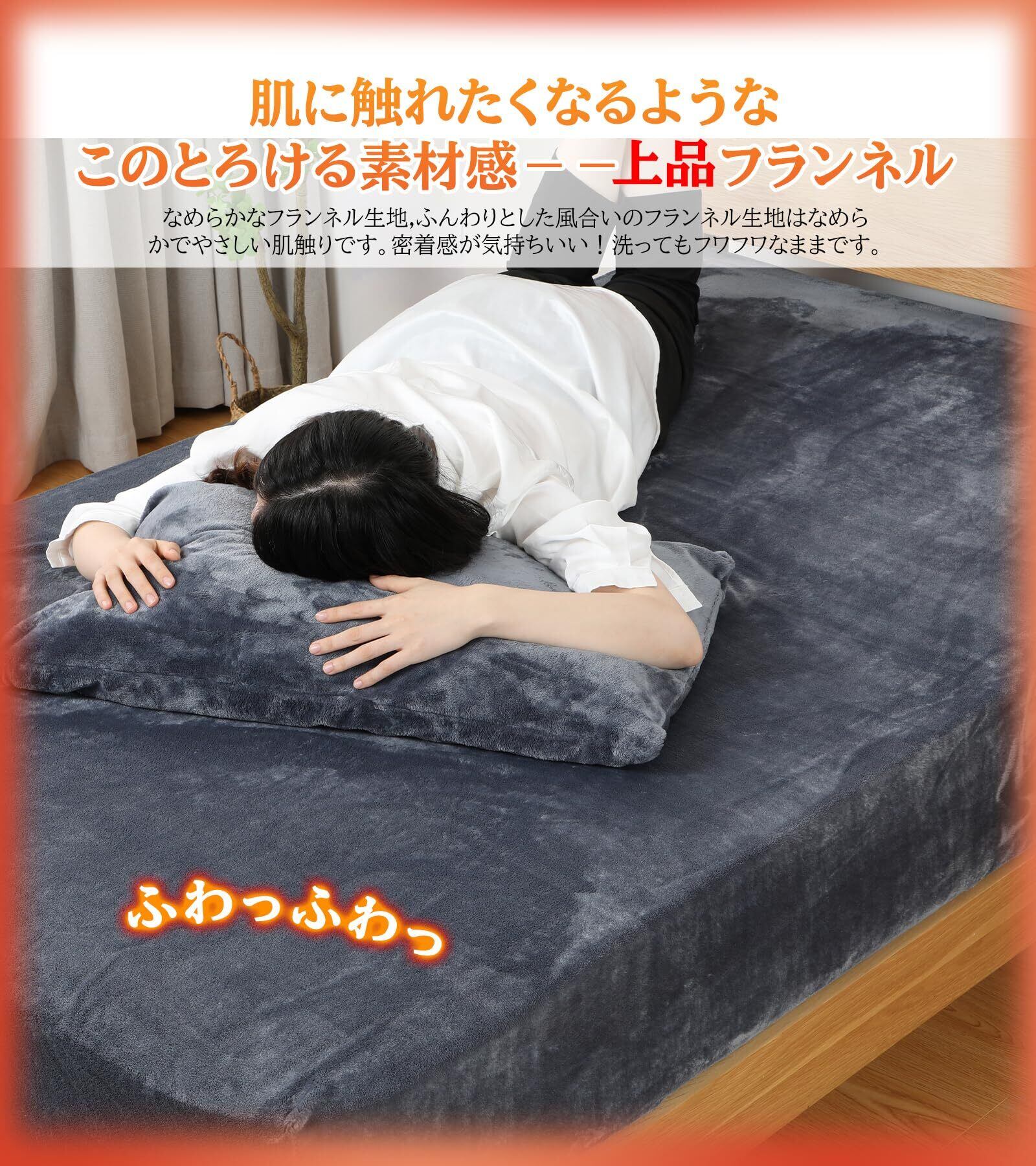 「ボックスシーツ シングル」は、約100×200cmのサイズで、冬の寒さからしっかりと体を守ります。厚手のフランネルとマイクロファイバーを使用し、ふわふわのなめらかな肌触りを実現。まるで暖かい毛布に包まれるかのようなリラックスした眠りをお楽しみいただけます。