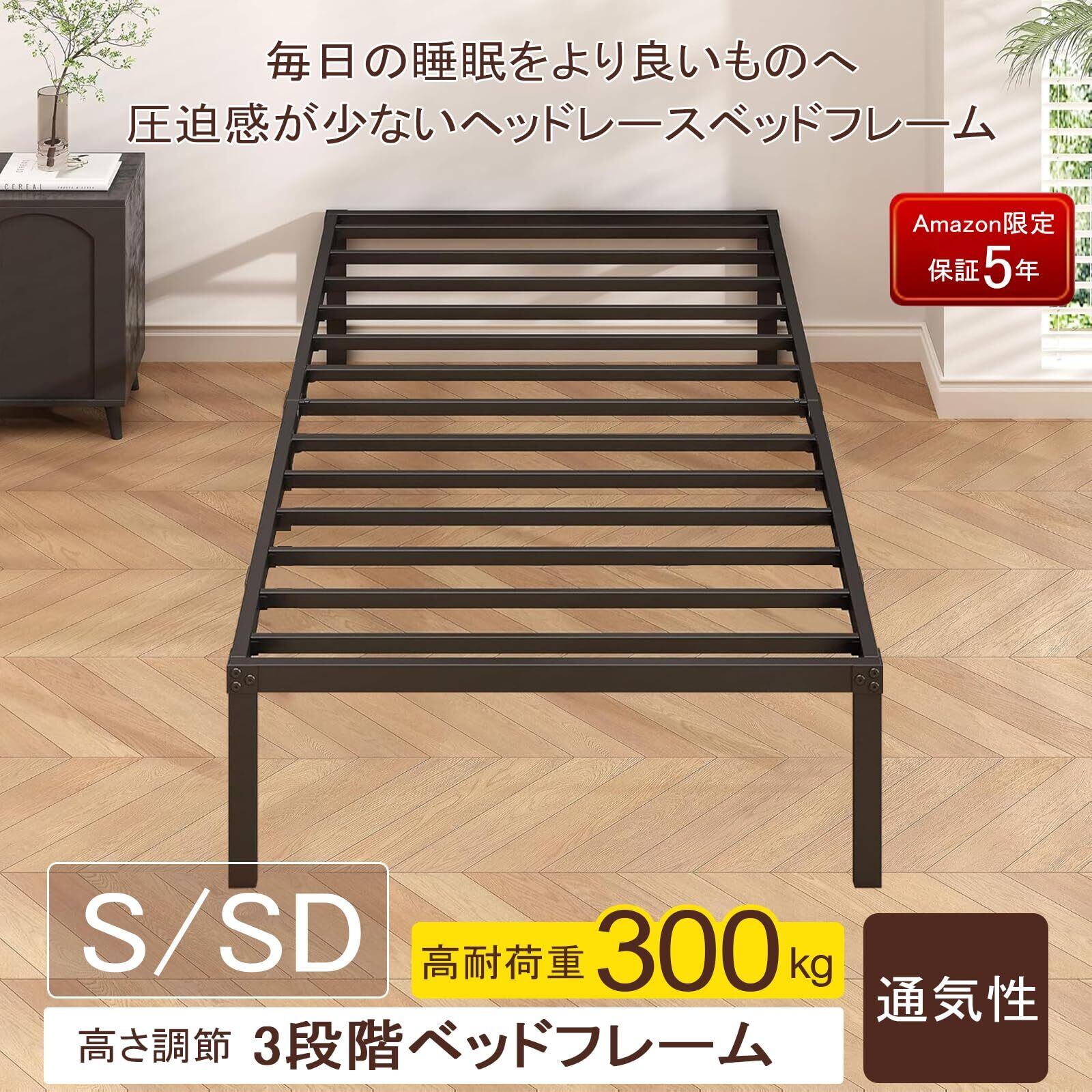■ 特徴: 3段階高さ調整、耐荷重300kg、すのこデザイン、通気性良好、ヘッドレス、組み立て簡単