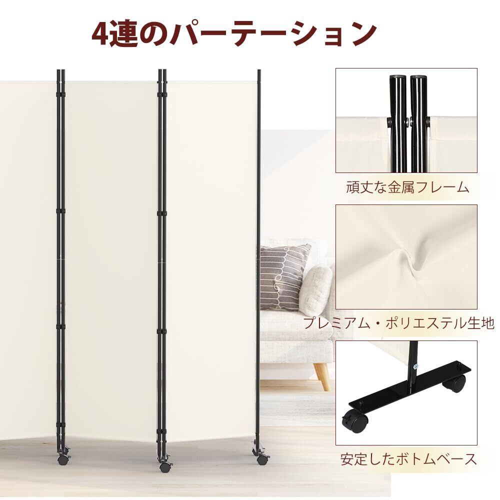 パーテーション 4連タイプ間仕切り 高さ178cm 幅223cm キャスターやカバーストリップ付き 折り畳み式 パーティション 衝立スクリーン 区切り 目隠し 省スペース オフィス 事務所 リビング (ベージュ)