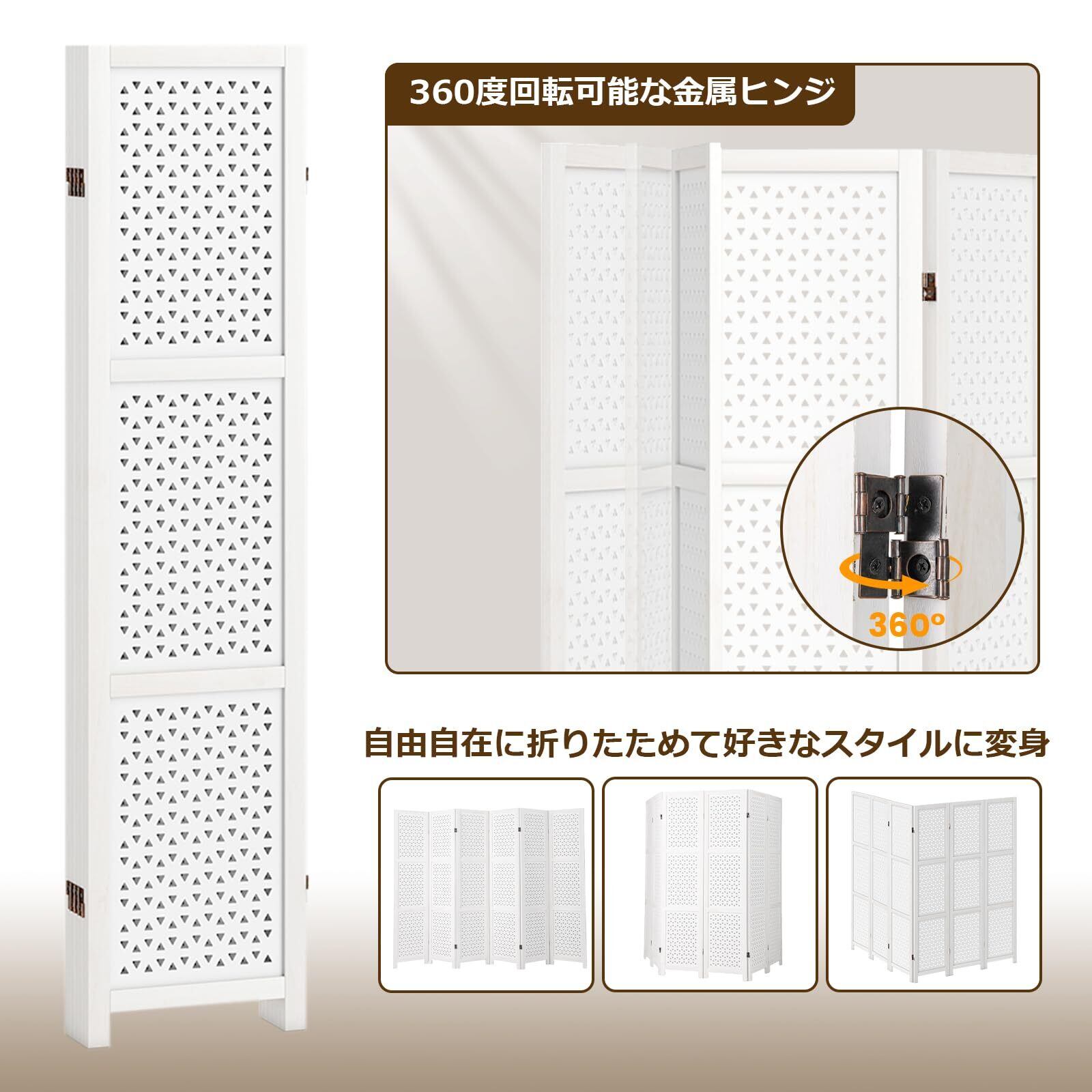 【数量限定】Giantex パーテーション 六連 間仕切り 完成品 木製 天然木 折りたたみ式 幅246cmx高さ170cm おしゃれ 自立式 間仕切り 部屋仕切り 衝立て 屏風 スクリーン ついたて 目隠し 室内 軽量 コンパクト収納 オフィス 在宅勤務 飲食店 お風呂 (三角の透かし彫り, 六連)