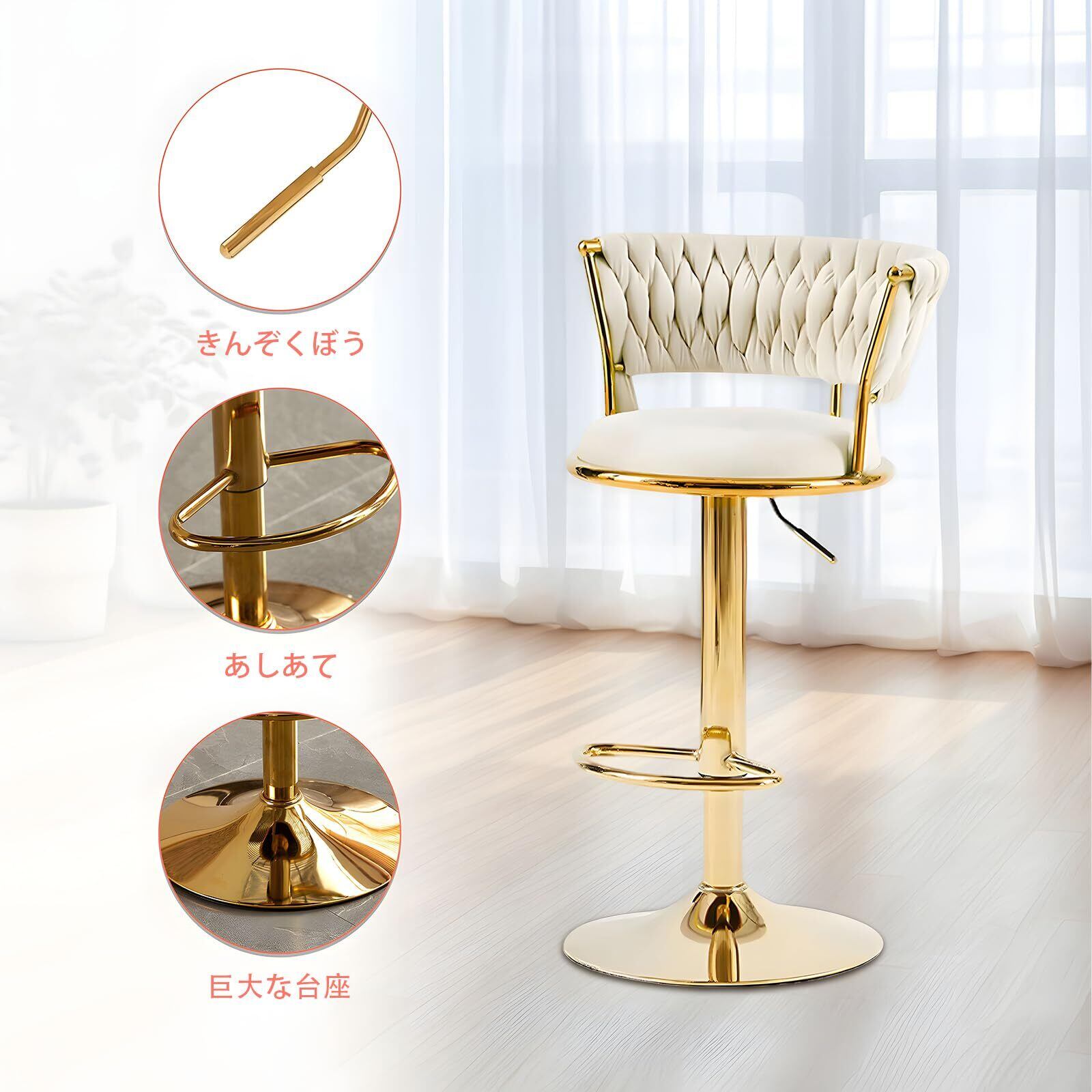 【数量限定】カウンターチェア 折畳み 昇降式 カウンターチェアー カフェチェア 背もたれ椅子 回転バー ハイスツール 軽量 スツール ダイニング カウンターの高さを調節できる厚手の底板 安定性を確保するための柔軟なクッションと背もたれ付きの椅子 おしゃれ ゴールド脚タイプ 40*40*81~102cm (ホワイト)