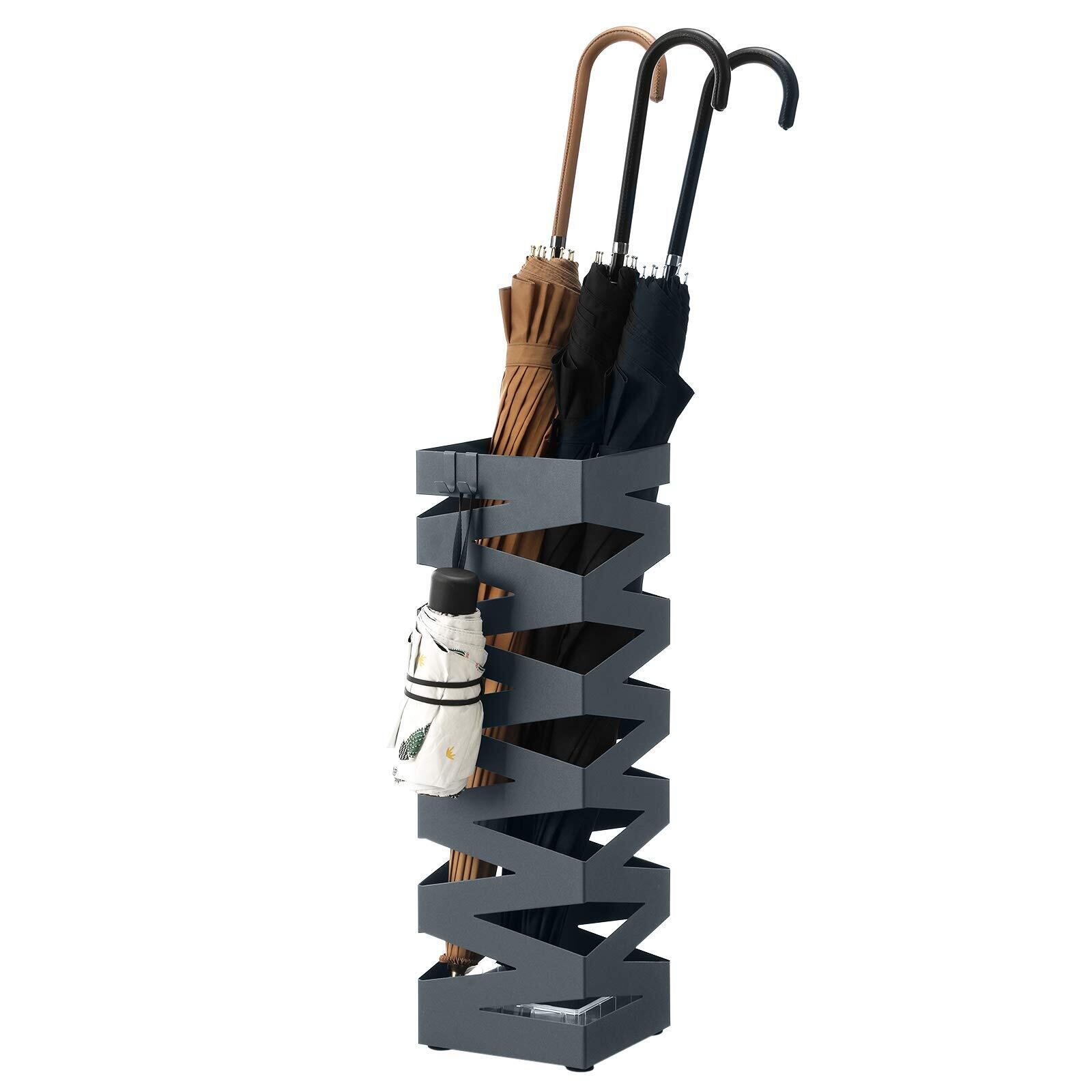 SONGMICS 傘立て かさたて スリム おしゃれ 業務用 おしゃれ 水受けトレイ付き フック付き LUC016G01