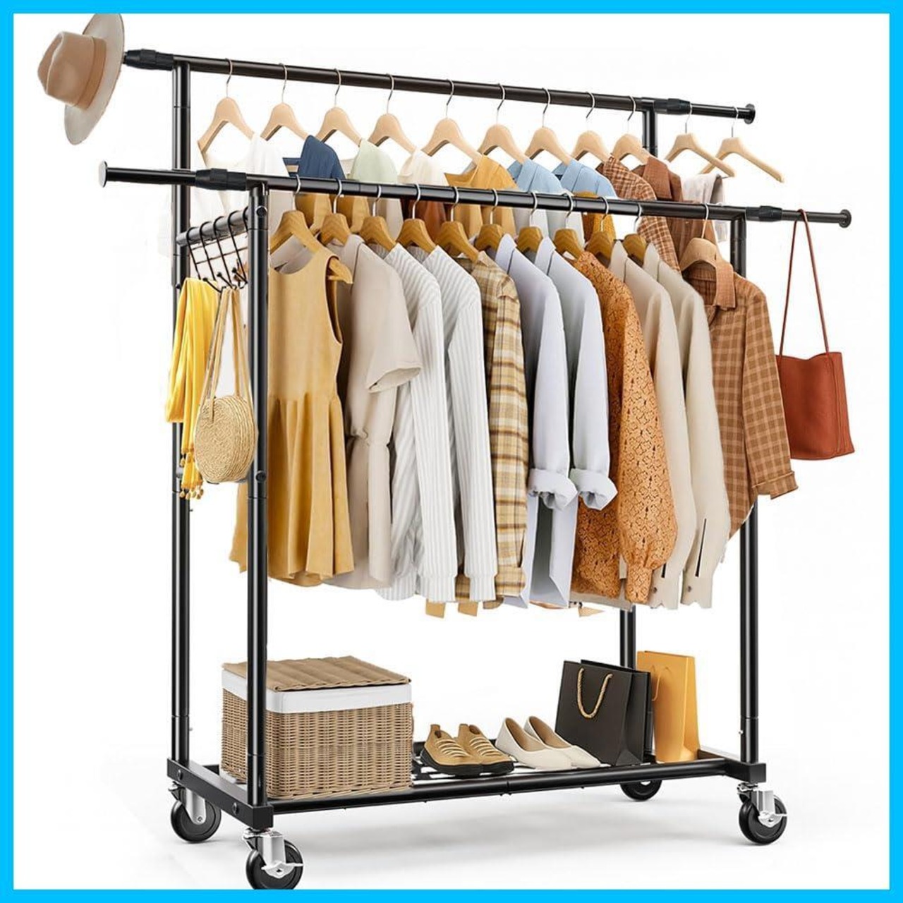 【伸縮可能なハンガーラック】ハンガーバーの両端がさらに28cm延長され、より多くの吊り下げスペースを提供します(ハンガーバーは91cmから150cmまで延長可能)。大容量横に伸びる設計で、カバン、帽子、マフラー、その他のアクセサリーをかけるのにも最適です。