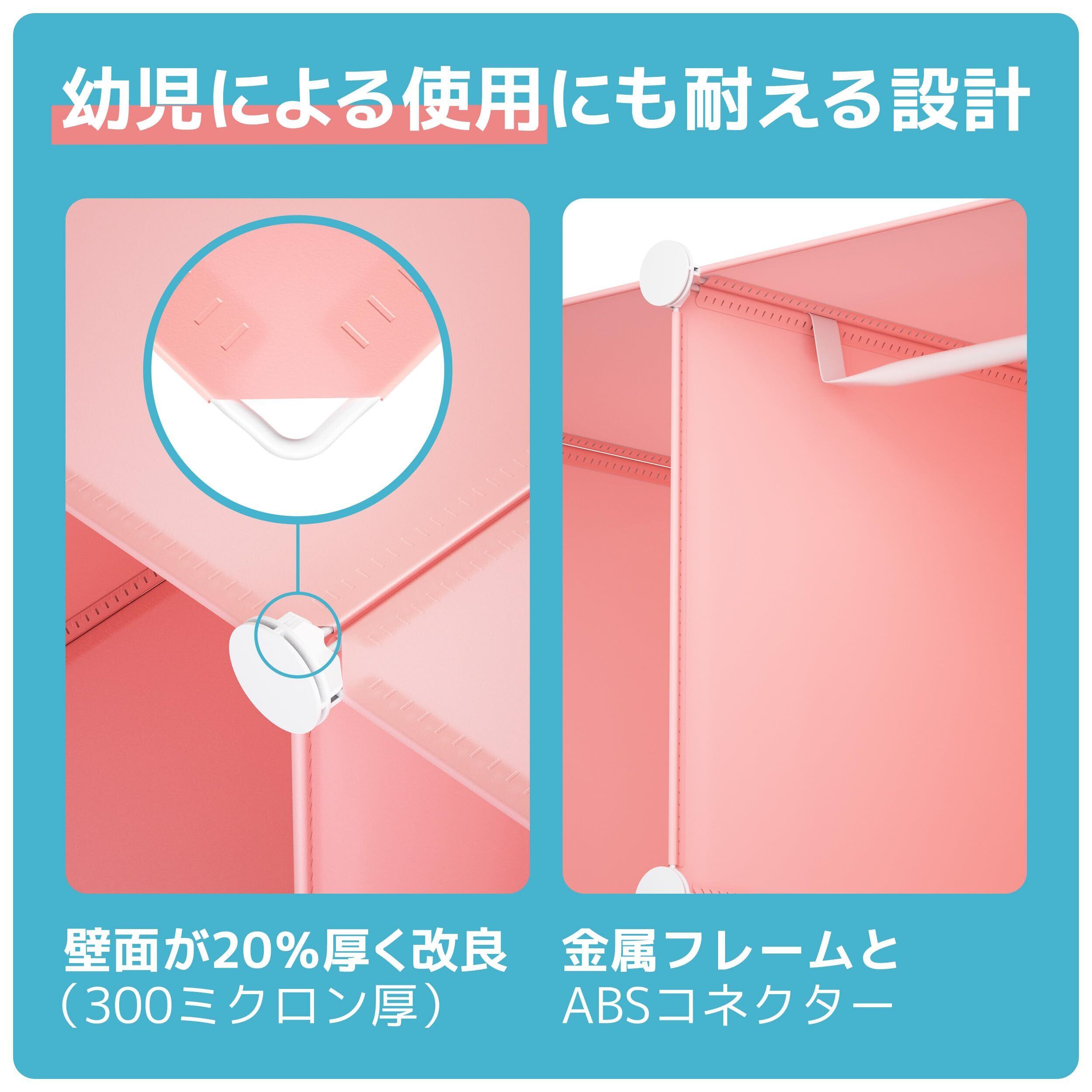 頑丈なポリマー製で、一般的なものより20%厚い素材を使用しているため、ベビー服用のクローゼットは小さな子供たちの活発な動きにも耐えられます。クローゼットの棚には高品質の金属フレームとABSコネクタを採用しています。