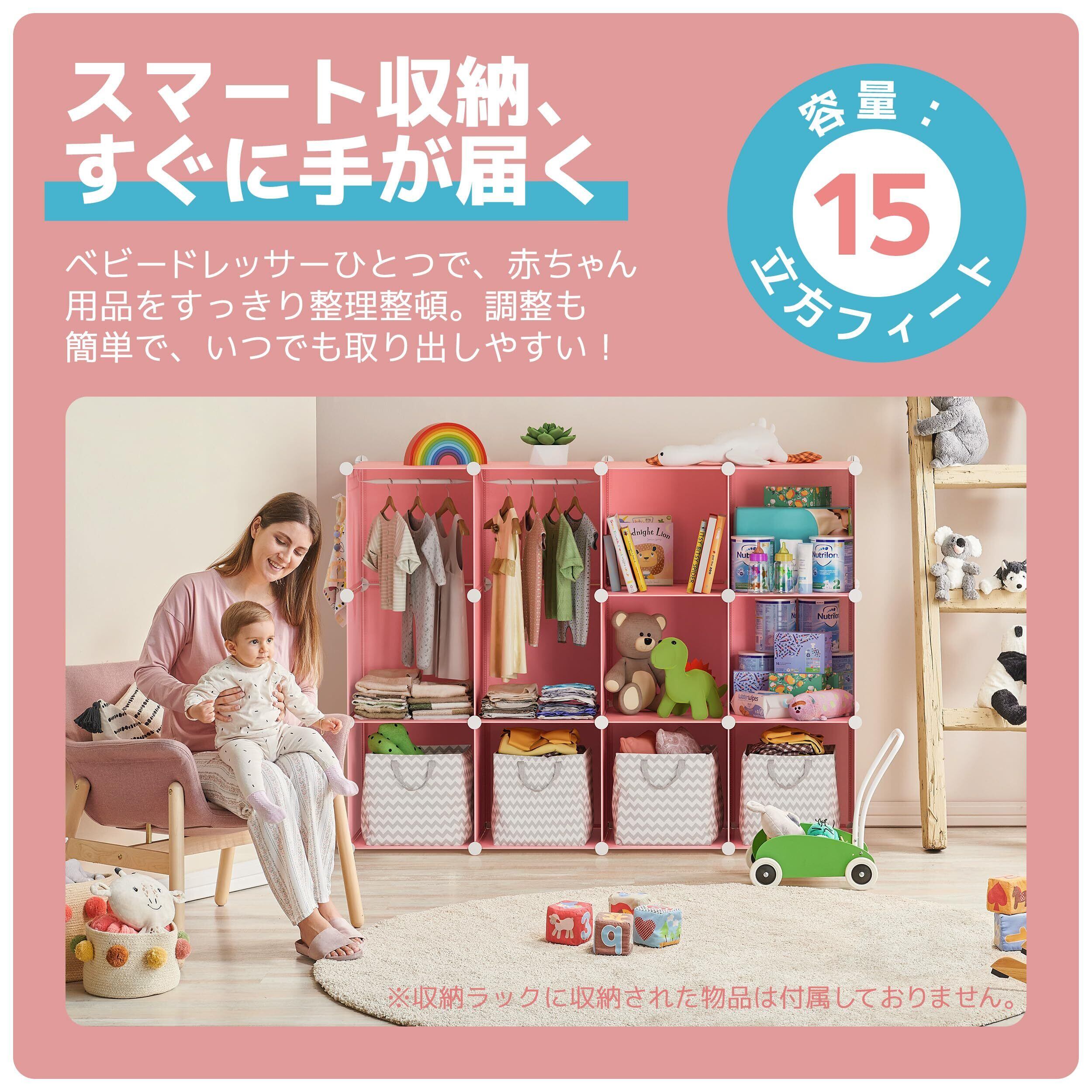 この収納ラックは、赤ちゃんの衣類やおむつ、おもちゃなどを効率よく整理できる設計です。カラフルでかわいいピンク色は、どんな部屋にもぴったり!おしゃれで実用的な収納アイテムです。