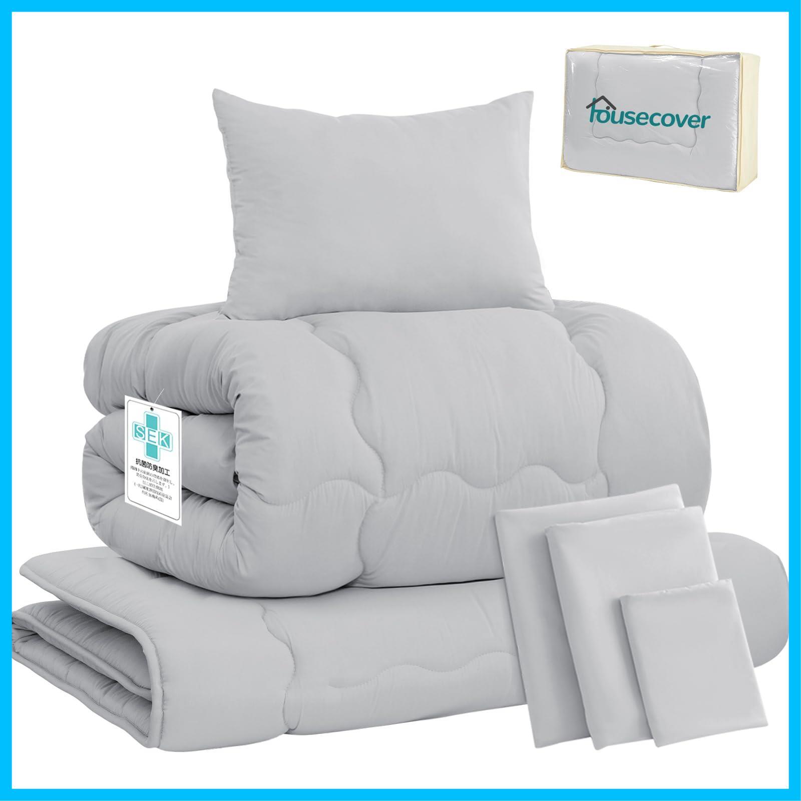 【人気商品】Housecover 布団セット セミダブル 7点セット SEK認証 抗菌 防臭 防カビ 洗える ふとんセット 来客用 【ボリューム増量 中綿1.8kg 掛布団】 枕 布団カバー3点 収納ケース付き 組布団 寝具セット ホコリが出にくい ピーチスキン加工 アレルギー対策 一年中使える グレー01