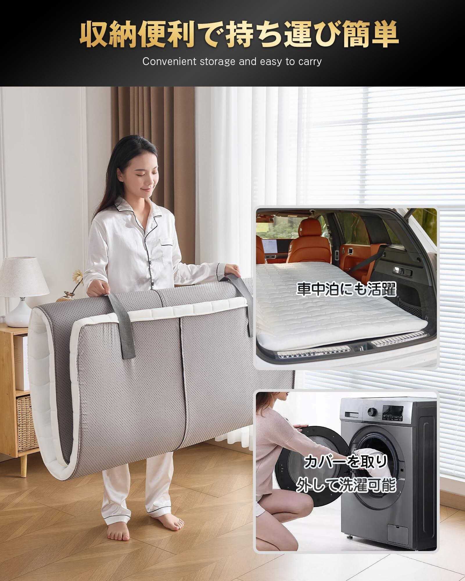 取り外し可能なカバーは、洗濯が可能なので、いつでも清潔を保つことができます。コンパクトに折りたたむことができるため、収納や持ち運びも簡単。引っ越しや旅行にぴったりです!