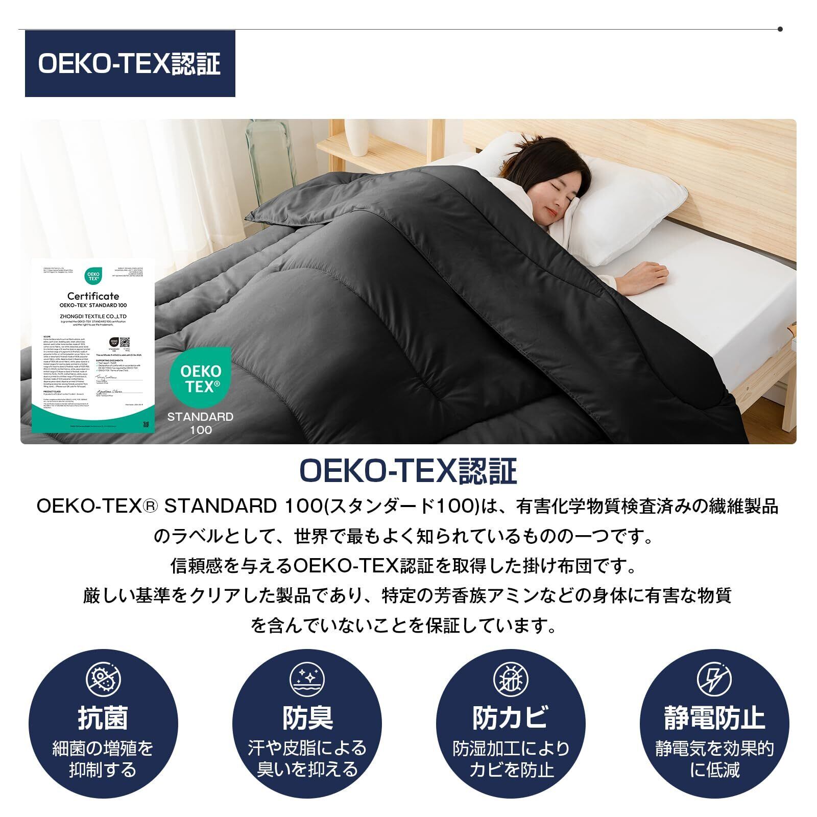 Matdeco 掛け布団 合掛け布団 ダブル 掛けふとん 柔らかな肌触り 春秋向き 吸水速乾 かけ布団 洗える ピーチスキン加工 ふわふわ ほこりが出にくい オールシーズン 抗菌 防臭 防ダニ 身体にやさしくフィット 軽量 通気 中綿約1.2kg (190×210cm ブラック)