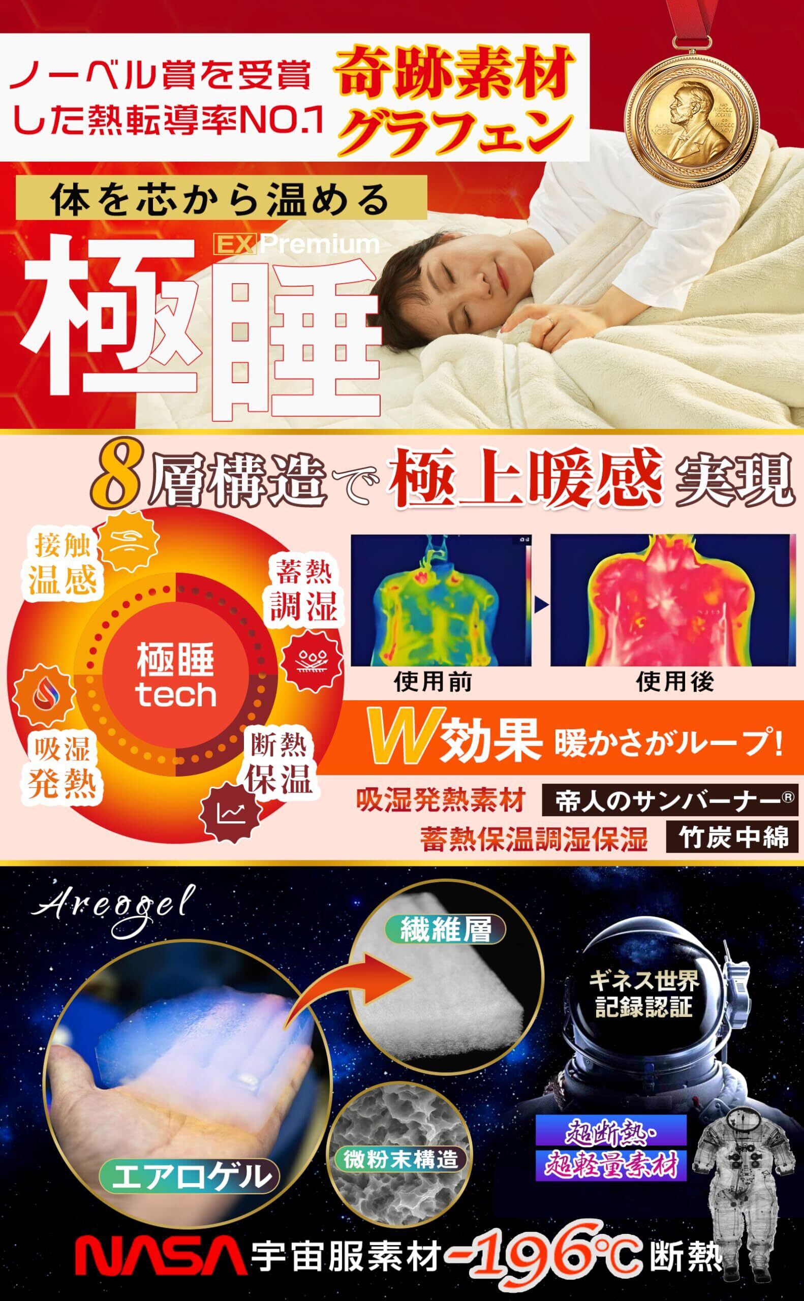 【極上睡眠を約束する6つの秘密の極上暖感枕パッド】①最高級フランネル「雲絨生地」が肌に優しい極上肌触りを提供し。②帝人の吸湿発熱&多機能繊維『サンバーナー』素材採用とグラフェン加工により、快適な温度をもたらし、一瞬で発熱させる。③竹炭中綿とCICA美肌保湿加工で理想の湿度を保ち。④抗菌防臭+光触媒加工で清潔感を徹底。⑤四重静電気防止加工で嫌なパチパチを抑制して安心感を提供。⑥宇宙服素材のエアロゲル繊維の超断熱構造でさらに快適暖眠感を発揮、最高の眠りを実現するあったか枕パッド。