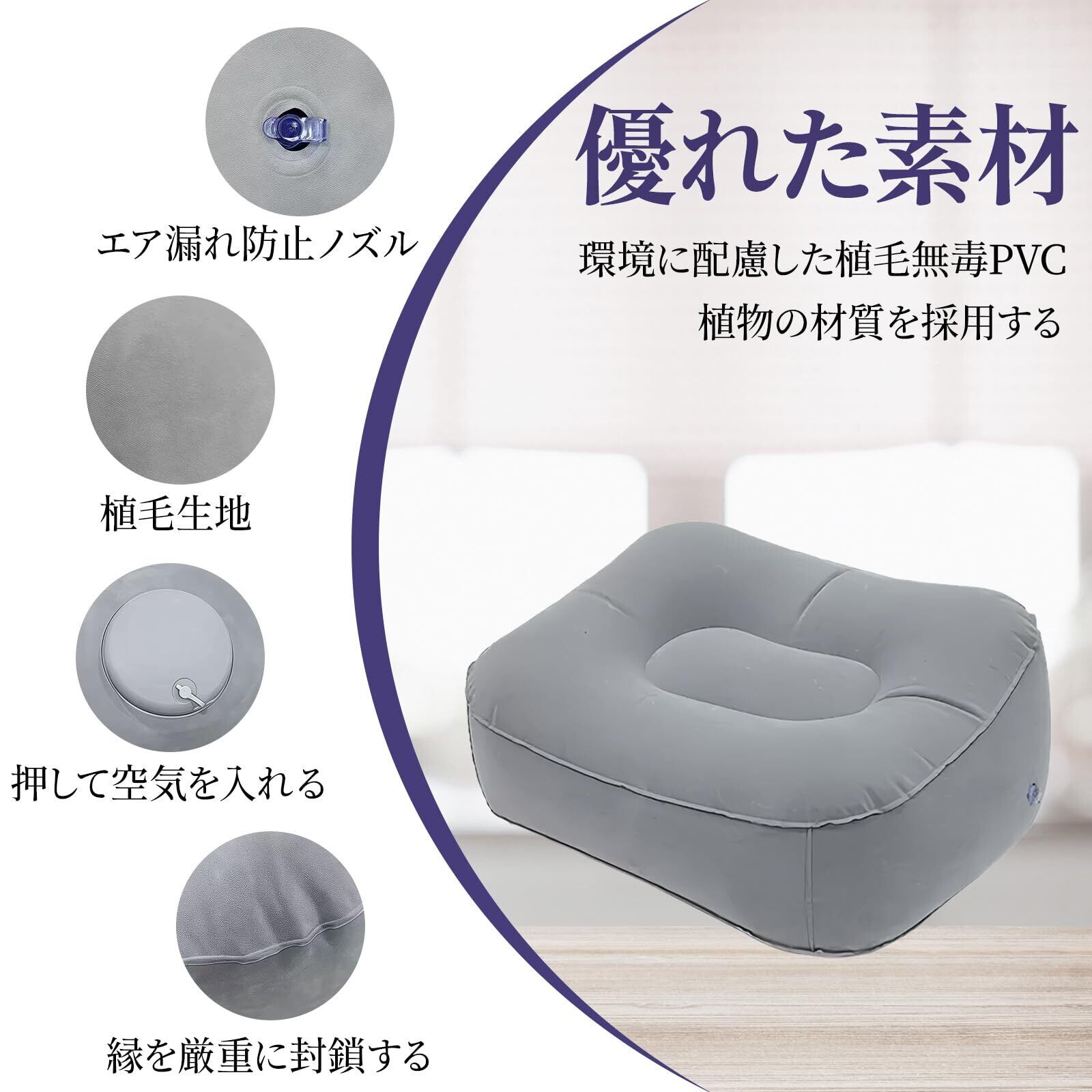 足置き 【2025初売り·内蔵空気ポンプ】 押し込み式充気で 足置き クッション フットレスト エアー足枕 グレー オフィス 飛行機 車中泊 旅行用 携帯簡単 折り畳み 足疲労解消 血行促進 自宅 会社 車 プレゼント 便利グッズ メンズ レディース 兼用 (灰色)