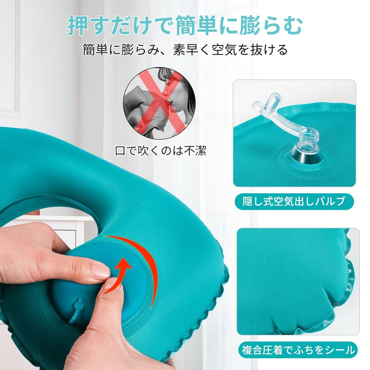 押すだけで膨らむシステムを採用しており、手間いらずです。空気を抜くのも簡単で、瞬時に収納できるので、旅行時のスペースも有効に使用できます。どんなシーンでも手軽に使用できます!