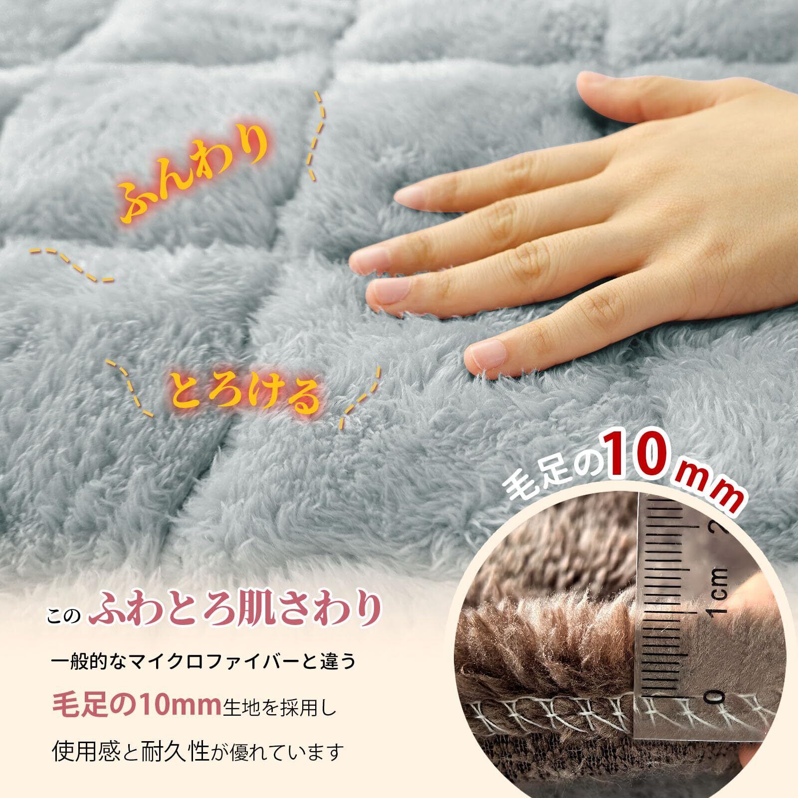 【接触温感・ふわとろ肌触り】Q-maxとは人の皮膚からものへの熱の移動を数値化したものです、値が小さい程暖かく感じます。の敷きパッドの生地はQ-MAX 0.095で、接触瞬間にあったか、ぬくぬく。しきぱっとの糸長さ8mmあり、密度も抜群、ふわふわで柔らかい、暖かい空気をたくさん蓄えます。