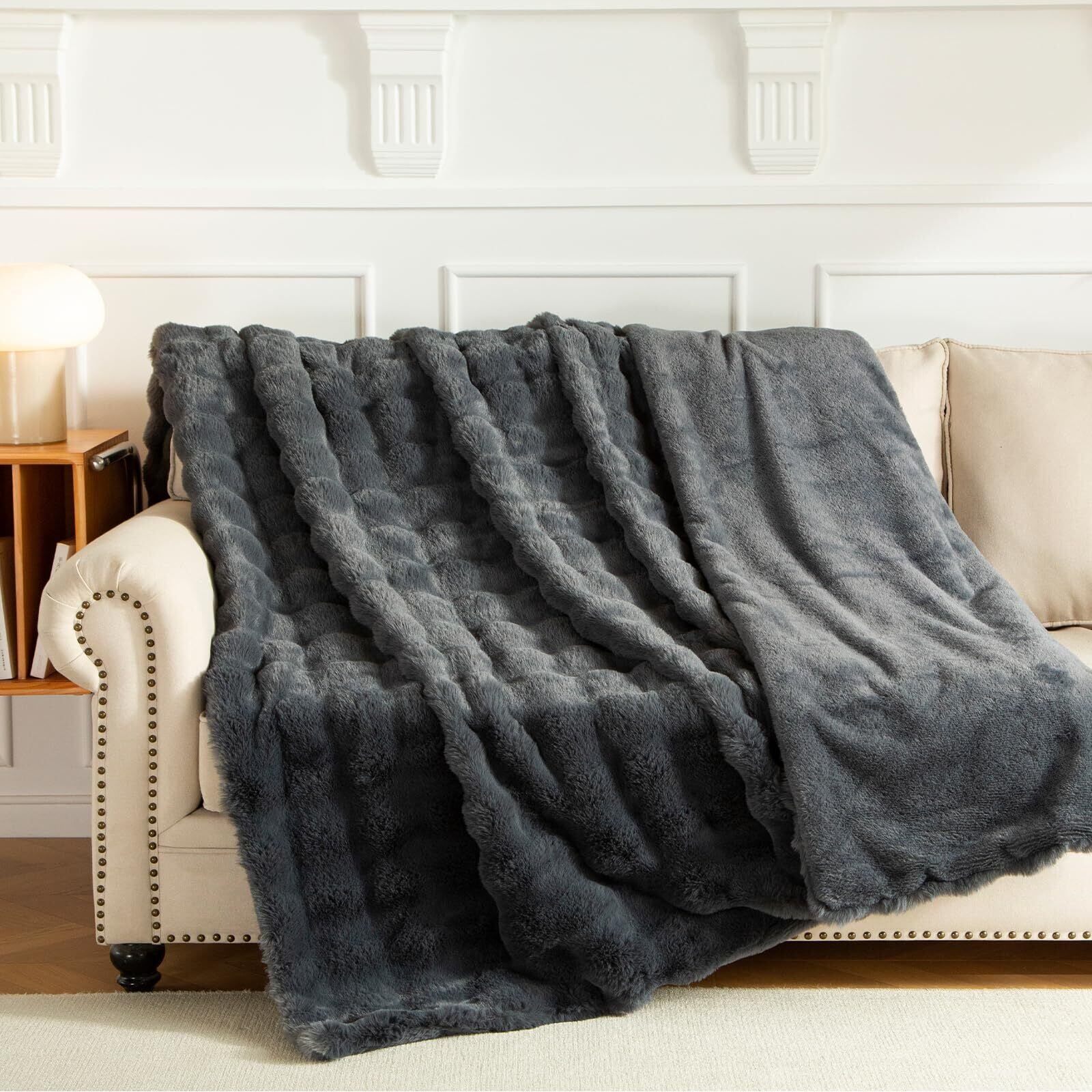 毛布 ふわとろ ダブル ブランケット モコモコ ふわふわ おしゃれ 暖かい ぽこぽこ 可愛い もふもふ 洗える (180x200,ネブラスカグレー)