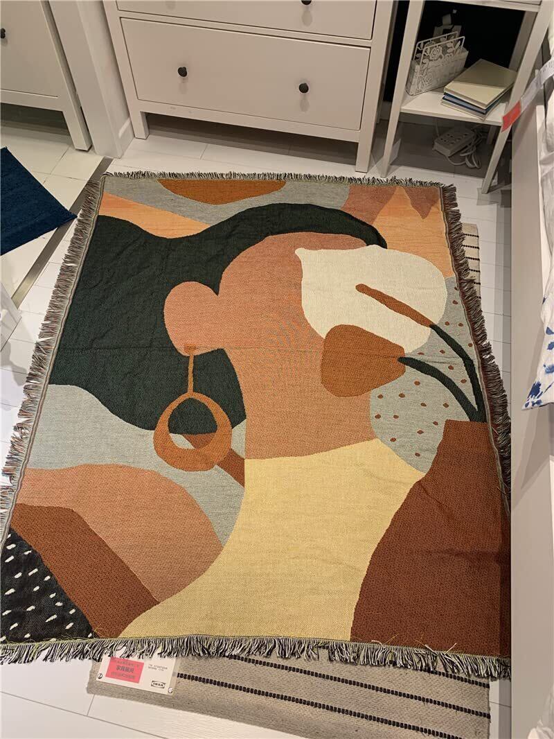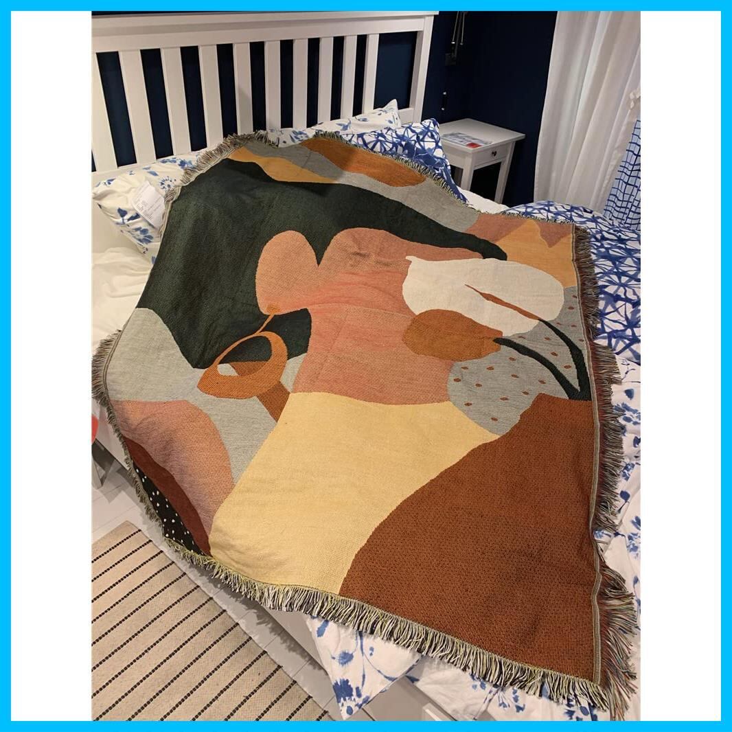 【在庫セール】April Throw,ブランケット ,ヴィンテージレトロな抽象アート柄ベッドカバー,レトロ, 北欧,フリンジ付き, ベッドカバー (130X160cm)