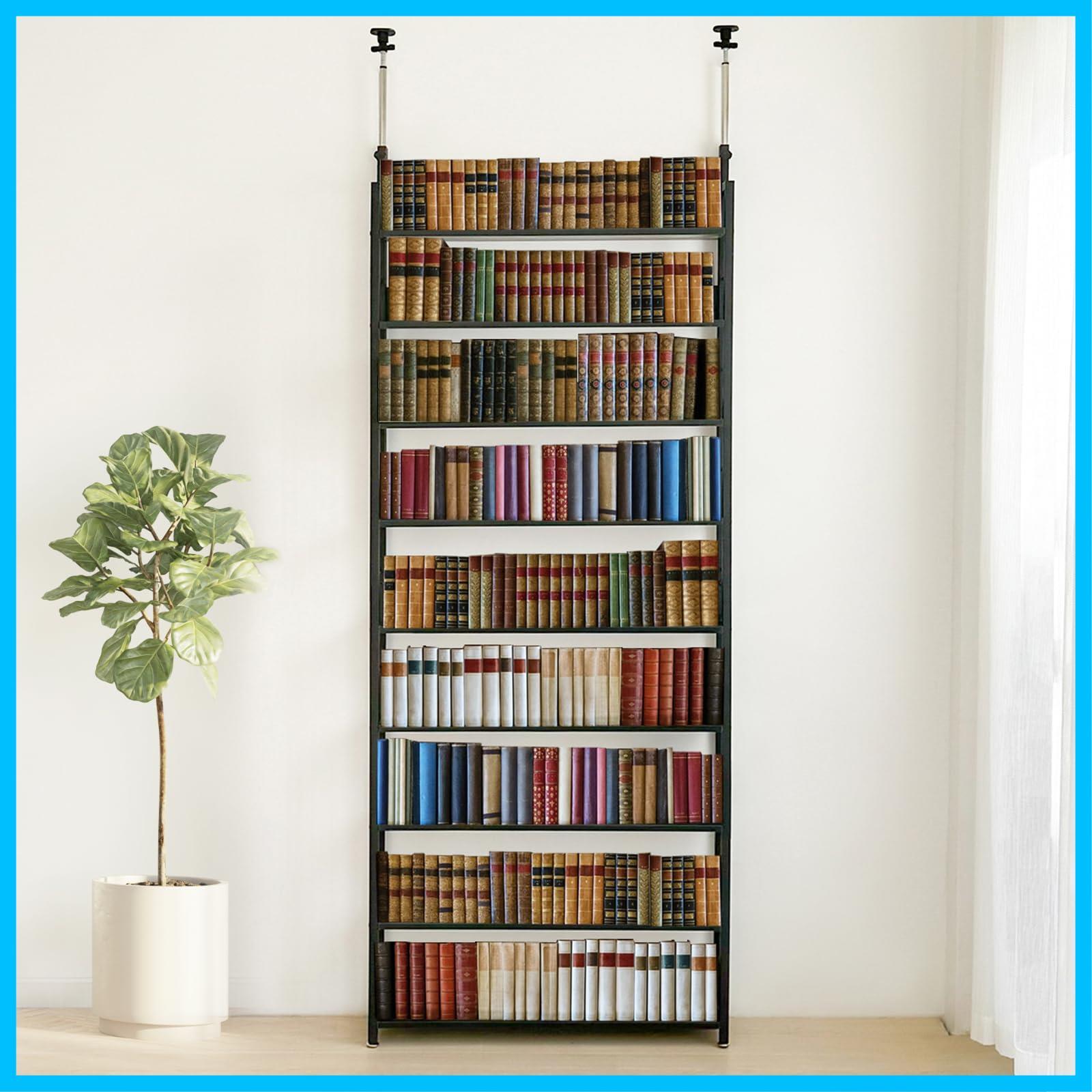 本棚 突っ張り つっぱりラック つっぱり棚 突っ張りラック 収納棚 壁面収納 ウォールラック 大容量 スリム コミックラック 薄型 シェルフ 収納 パーテーション 9段 簡単設置 DIY 穴あけ 工事が不要 組立品 幅80*奥行17*高さ210.5-275cm (幅80CM, ブラック)
