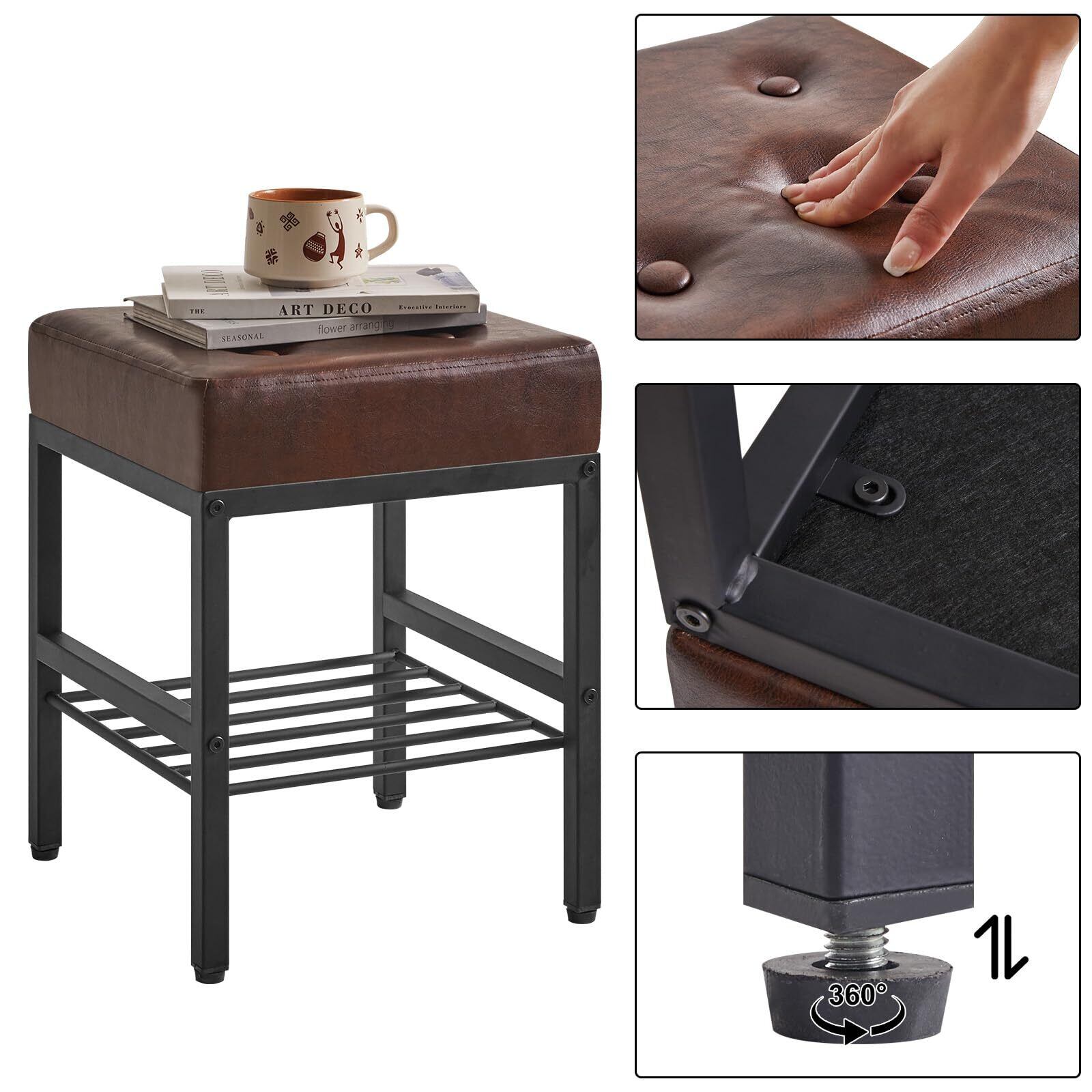 【在庫セール】IBUYKE スツール おしゃれ 椅子 多機能収納スツール 運搬便利 ダイニングチェア 足置き 滑り止め 大容量収納 耐荷重180kg PUレーザ 小物収納 リビング/玄関/寝室適用 ブラウン LG-60Z