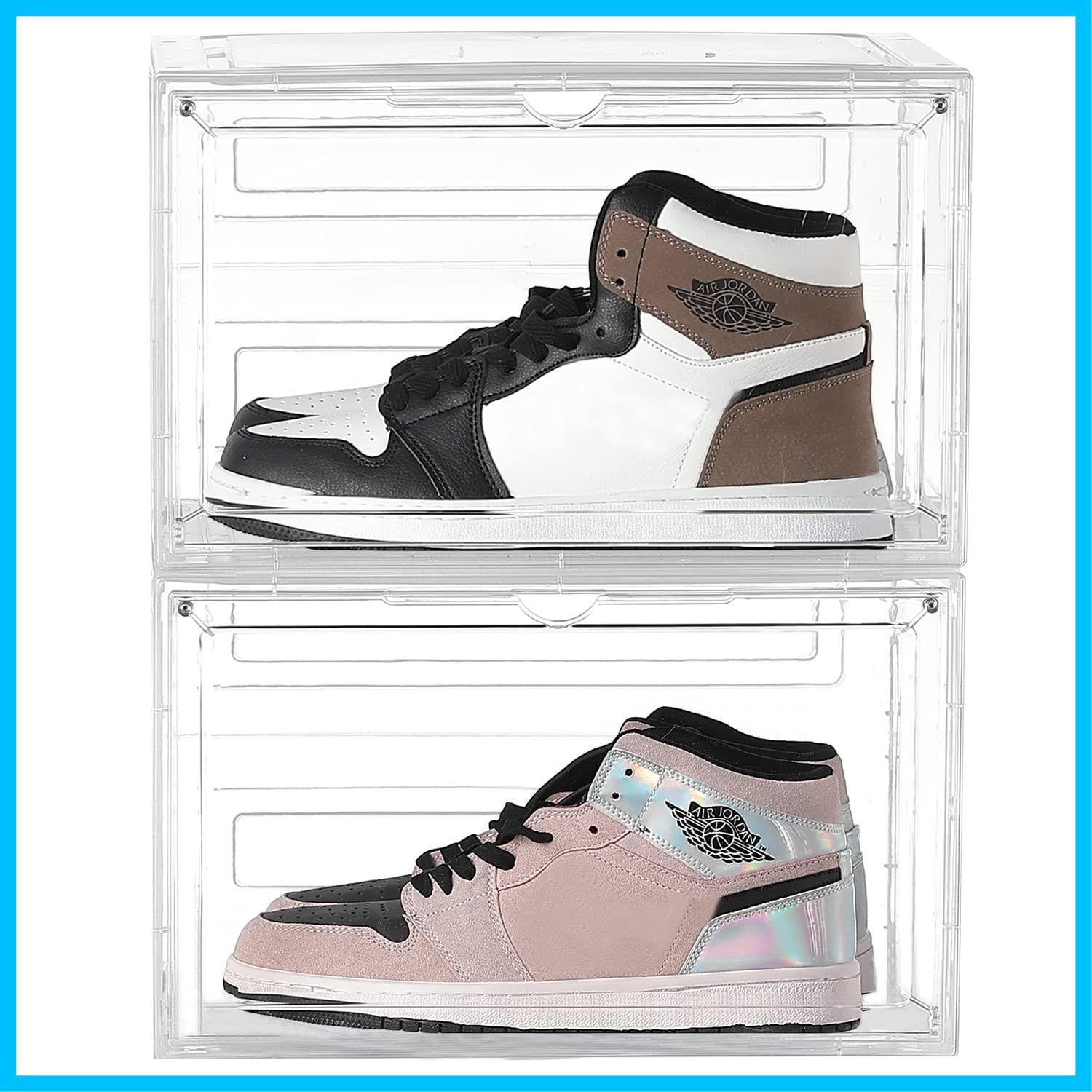【新着商品】シューズボックス スニーカーボックス スニーカー 収納 クリアケース 靴収納 透明 靴棚 組立て式 簡易組立 多層 開閉扉 小物 文房具 化粧品 クロゼット 玄関 横型 (クリア, 2個)