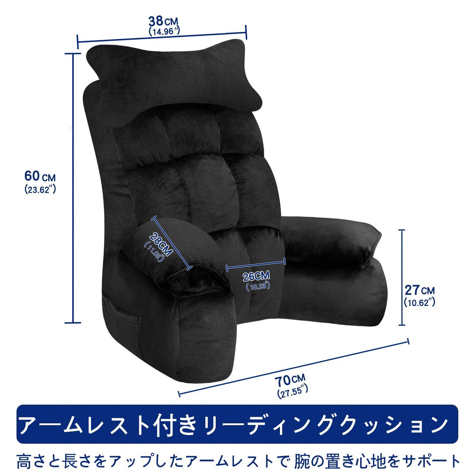 【新着商品】背もたれ クッション,アームレスト付き読書枕 大人向けサポートピロー,ベッド&ソファ用 テレビ枕・ゲームやリラックスに最適なリーディングクッション(まっくろ,60*26cm)